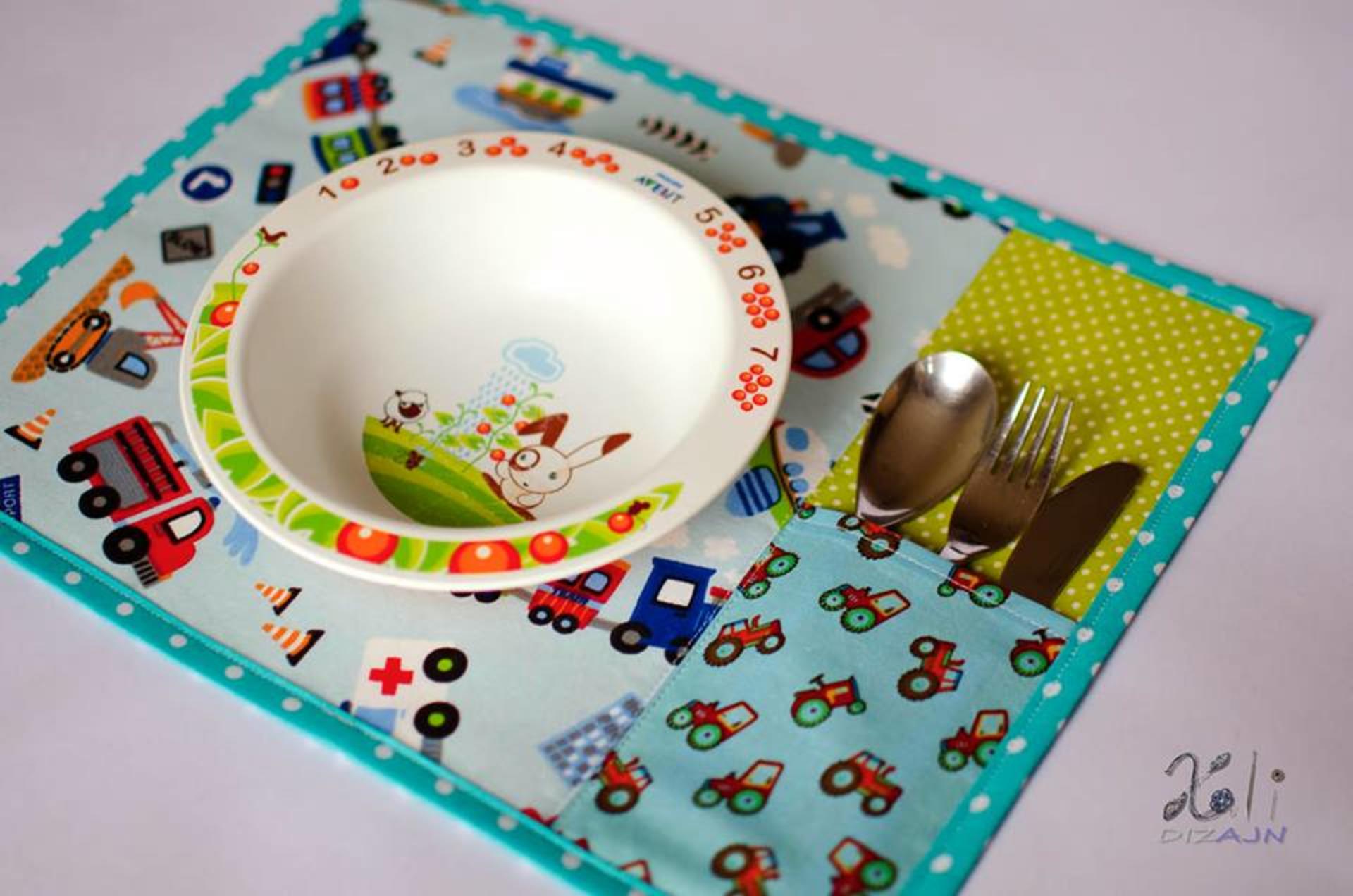 Detské, hravé, veselé a farebné ..... s vrecúškom na detskú lyžičku či príbor.
