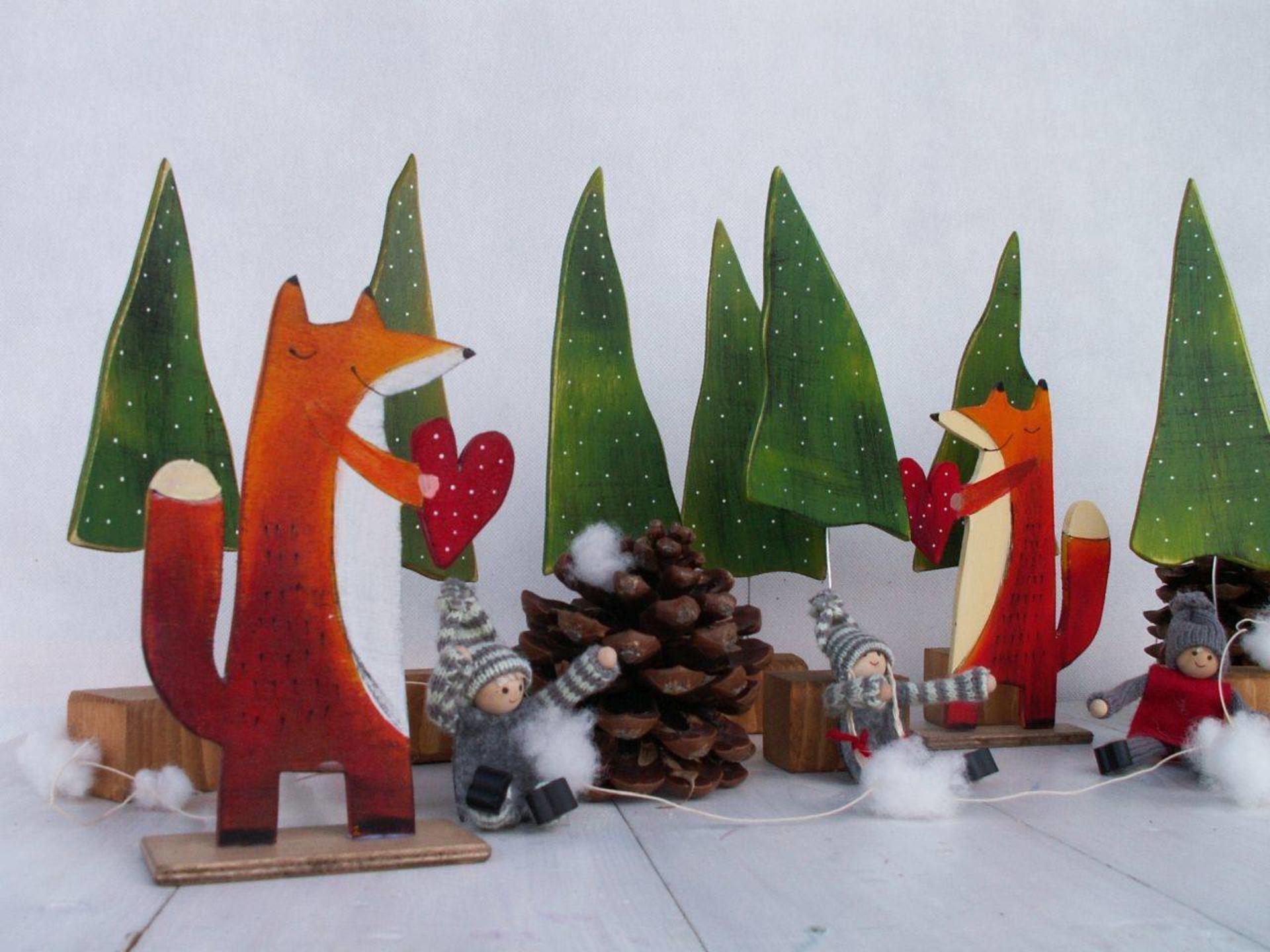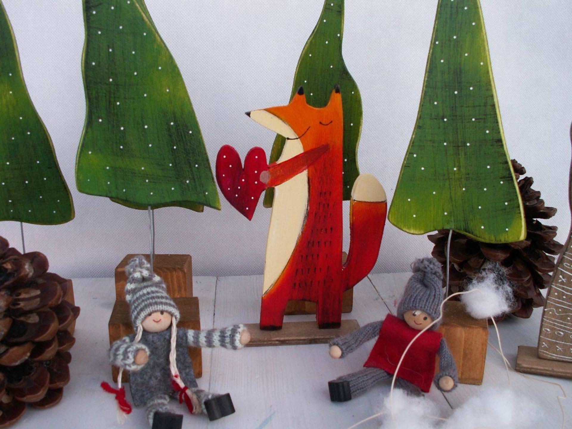 Krásna rozprávková stojaca dekorácia Líška ozdobí stôl, parapetu alebo poličku hocktoré ročné obdobie, špeciálne však na jeseň a v zime.