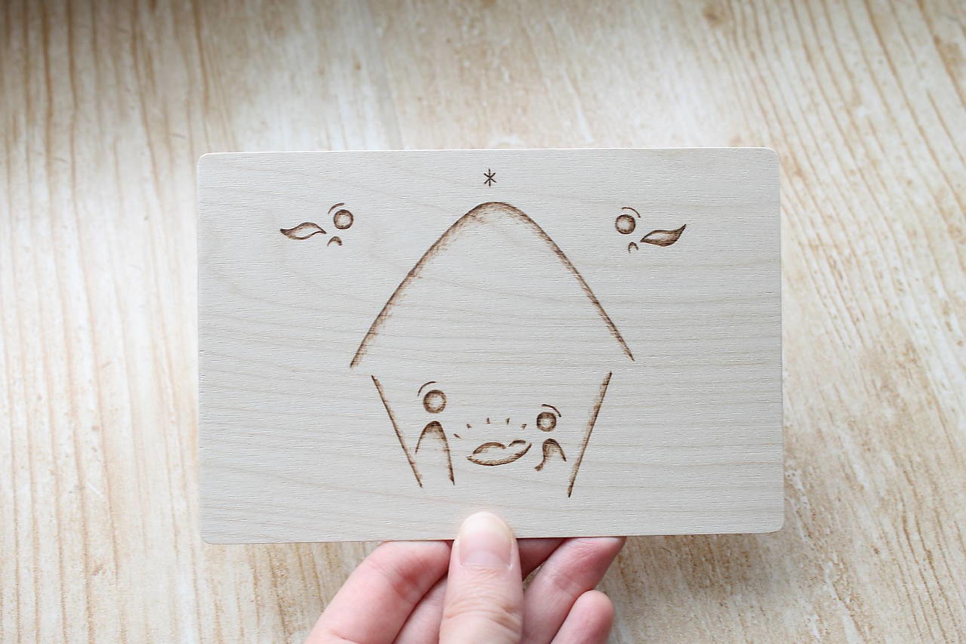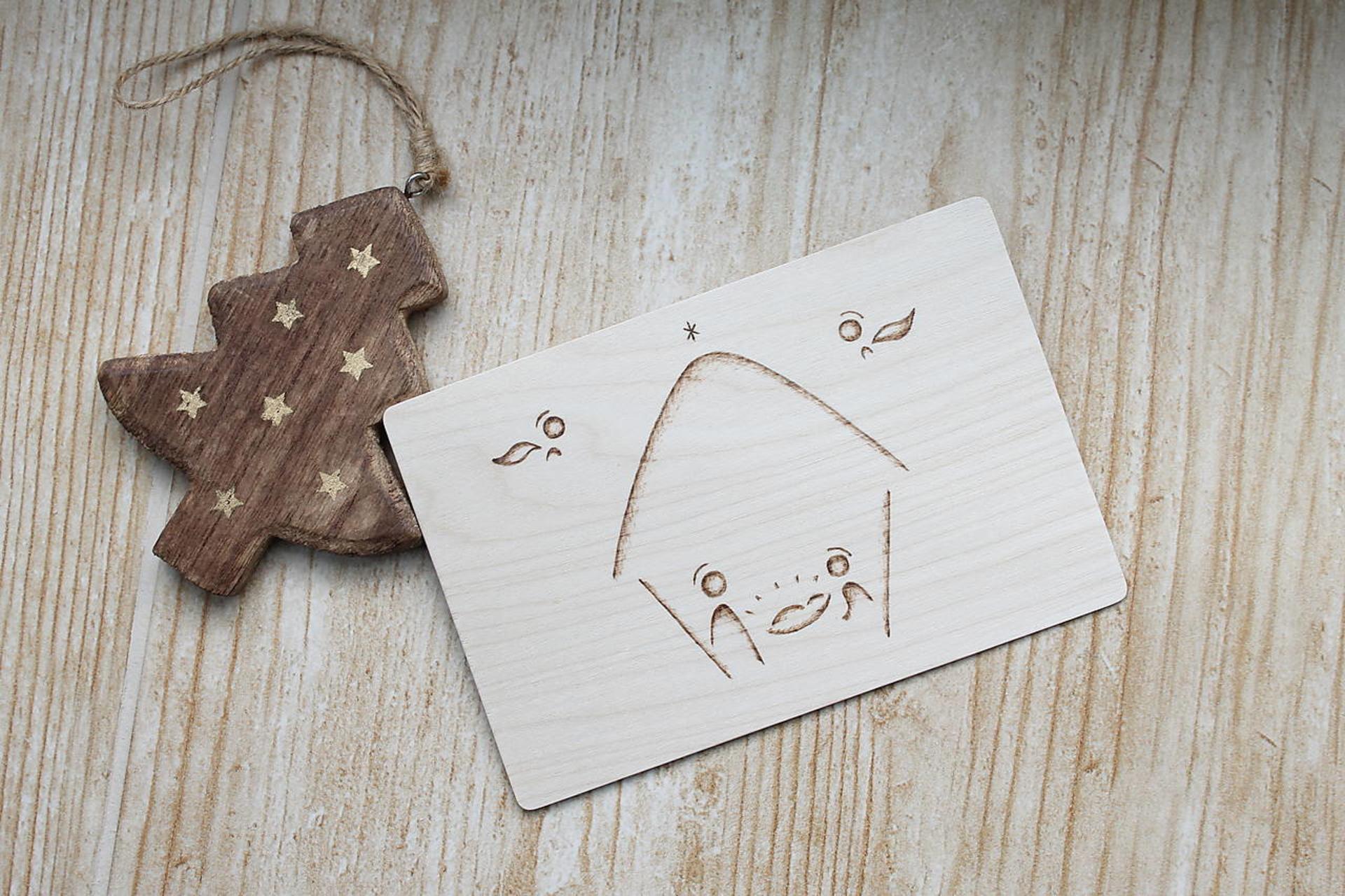 Drevený pozdrav vyrobený z brezovej preglejky dekorovaný ručným vypaľovaním.