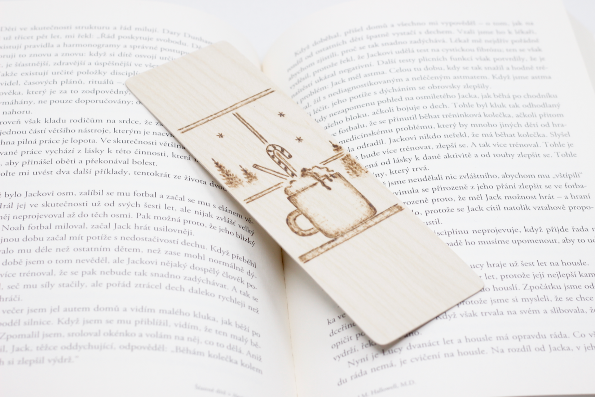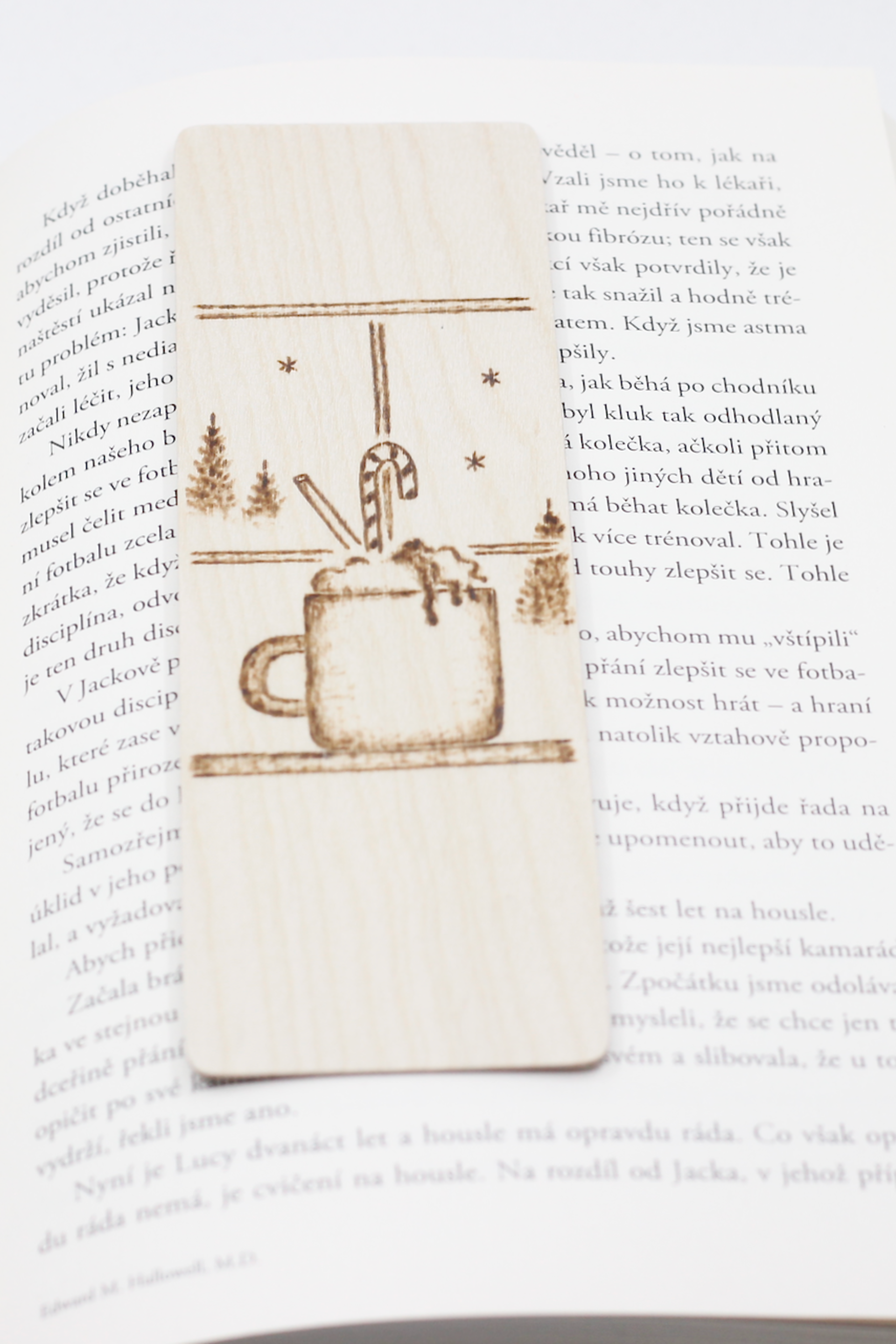 Drevená záložka vyrobená z brezovej preglejky dekorovaná ručným vypaľovaním.