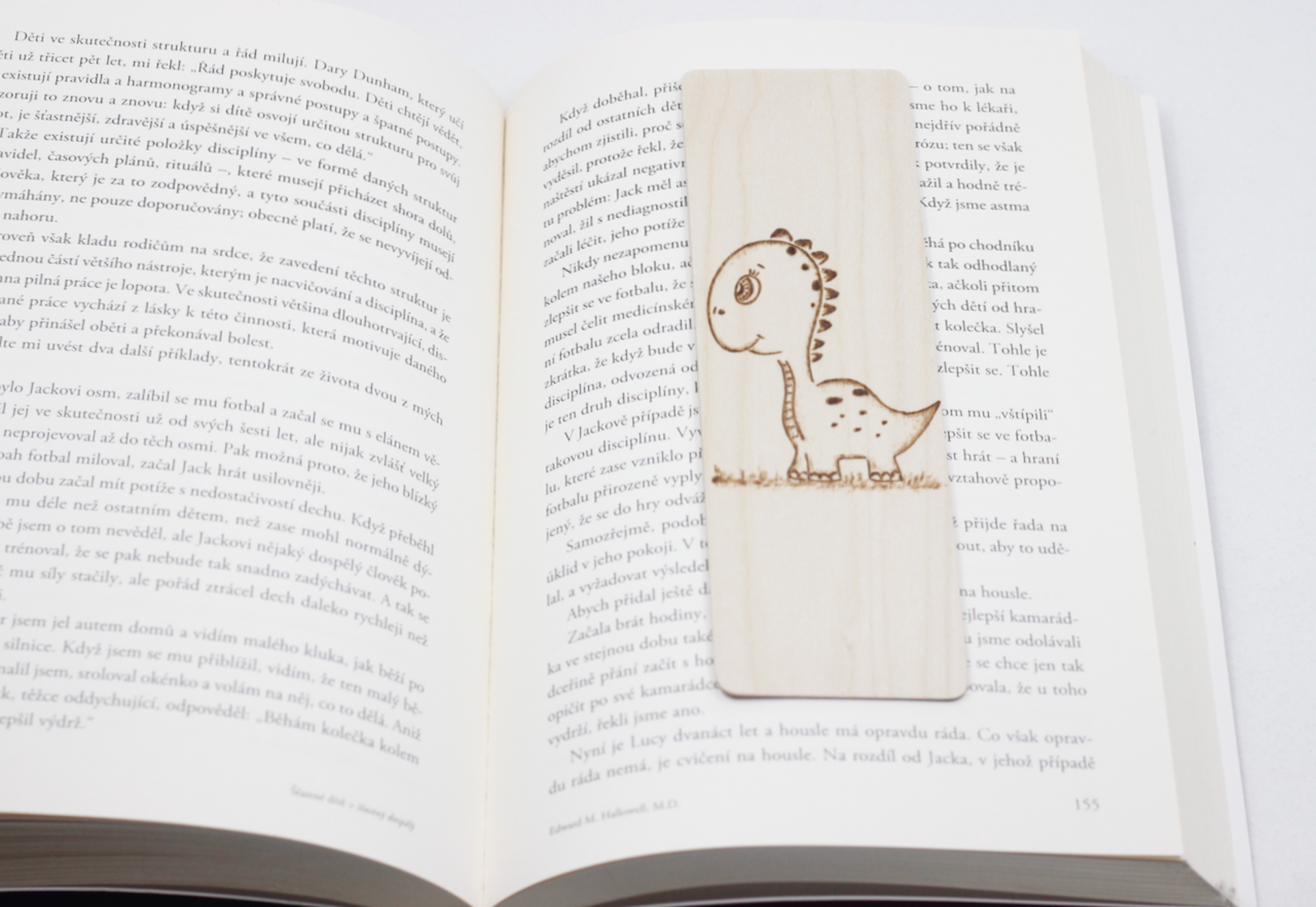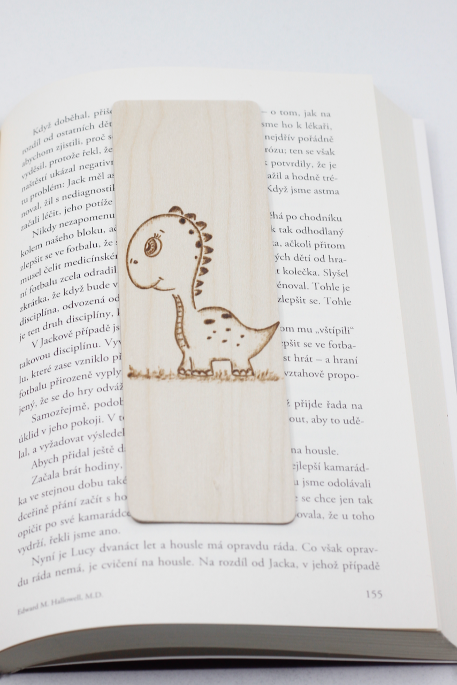 Drevená záložka vyrobená z brezovej preglejky dekorovaná ručným vypaľovaním.