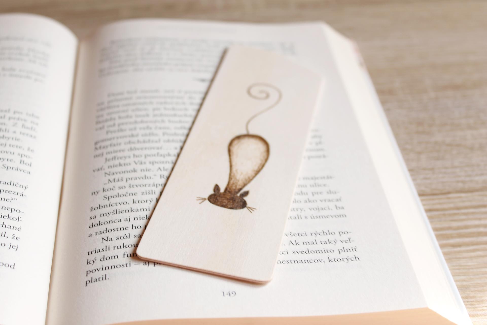 Drevená záložka vyrobená z brezovej preglejky dekorovaná ručným vypaľovaním.