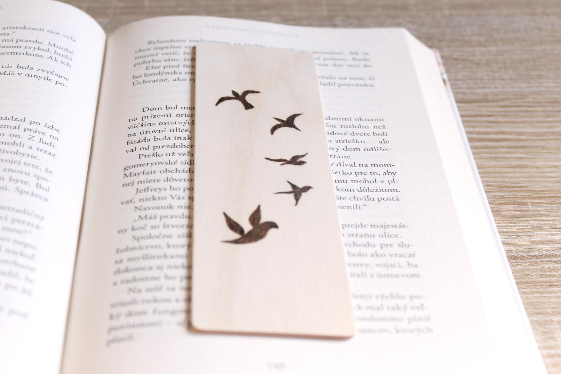 Drevená záložka vyrobená z brezovej preglejky dekorovaná ručným vypaľovaním.