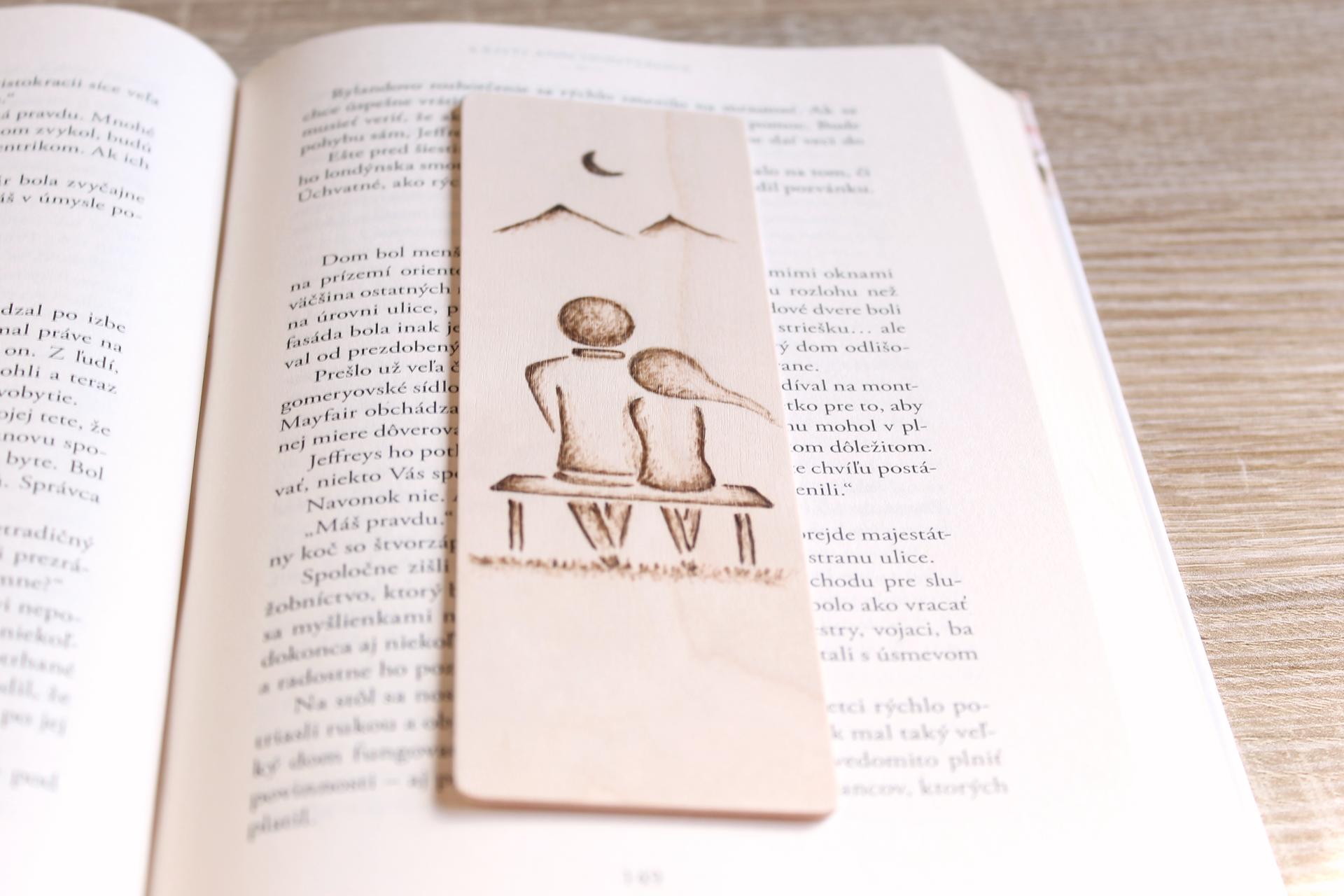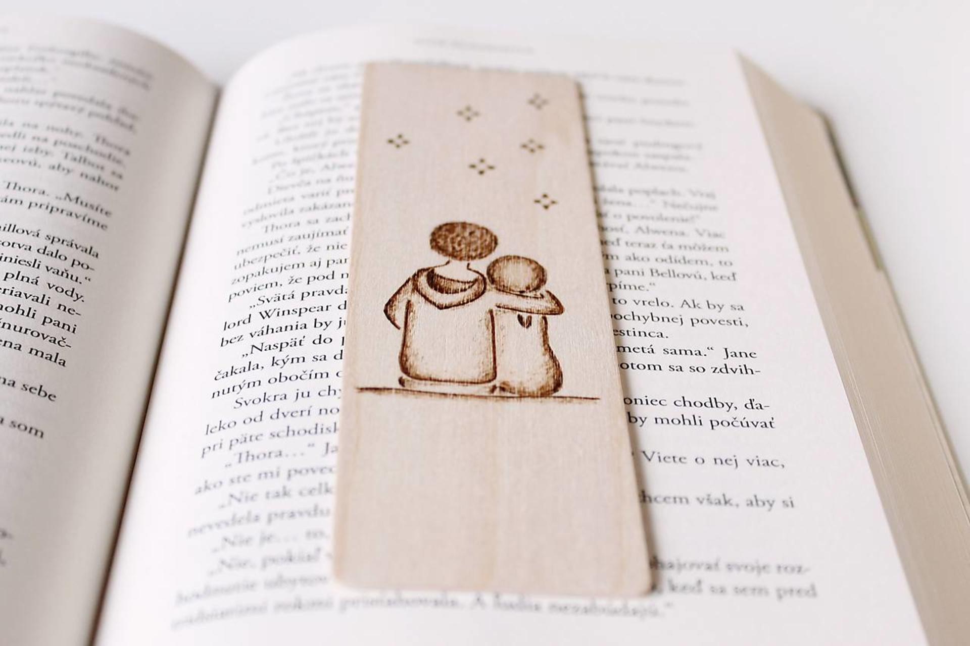 Drevená záložka vyrobená z brezovej preglejky dekorovaná ručným vypaľovaním.