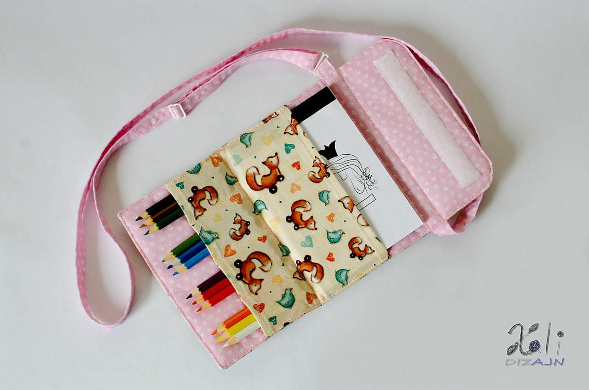 Cena za kabelku - pastelkovníčku je vrátene vnútorného vybavenia – 12 krátkych pasteliek a bloku na kreslenie formátu A6.