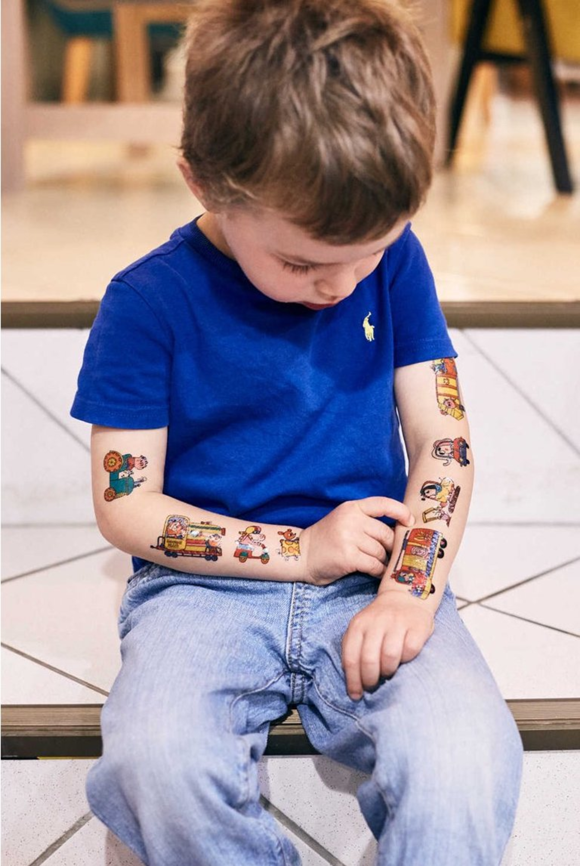Dočasné tetovačky neaplikujte na citlivú pokožku, v blízkosti očí alebo v prípade alergie.