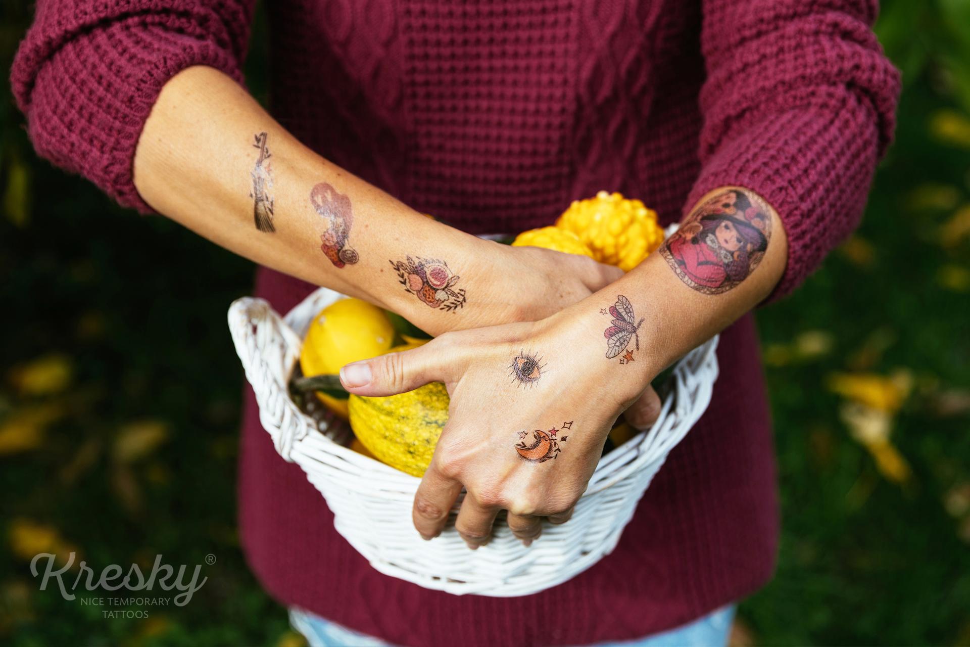 Dočasné tetovačky neaplikujte na citlivú pokožku, v blízkosti očí alebo v prípade alergie.