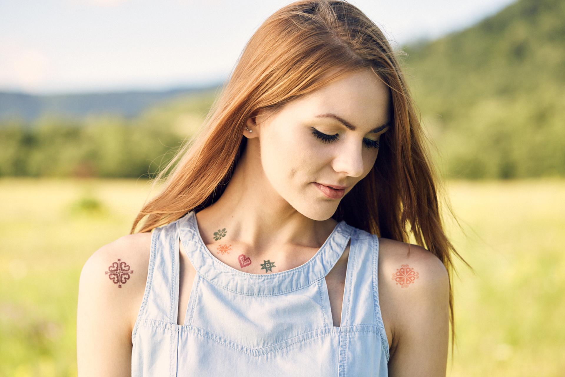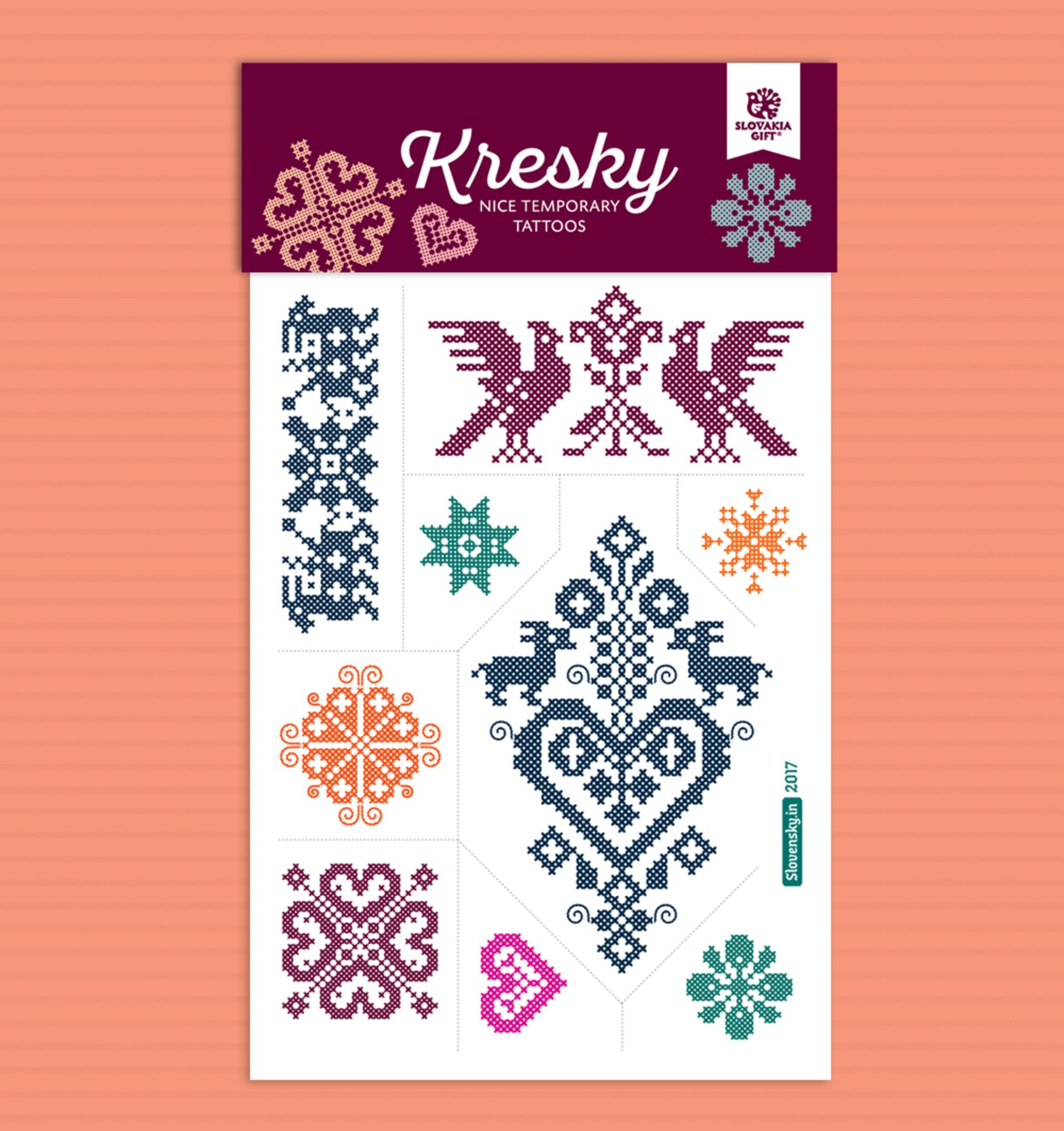 Krásne krížikové Kresky v spolupráci so značkou Slovakiagift. Vytvor si na tele vlastný krížikovo vyšívaný vzor, ktorý ladí ku všetkému. Dočasné tetovačky neaplikujte na citlivú pokožku, v blízkosti očí alebo v prípade alergie. Dermatologicky testované a bezpečné pre deti. Veľkosť: 10x15 cm