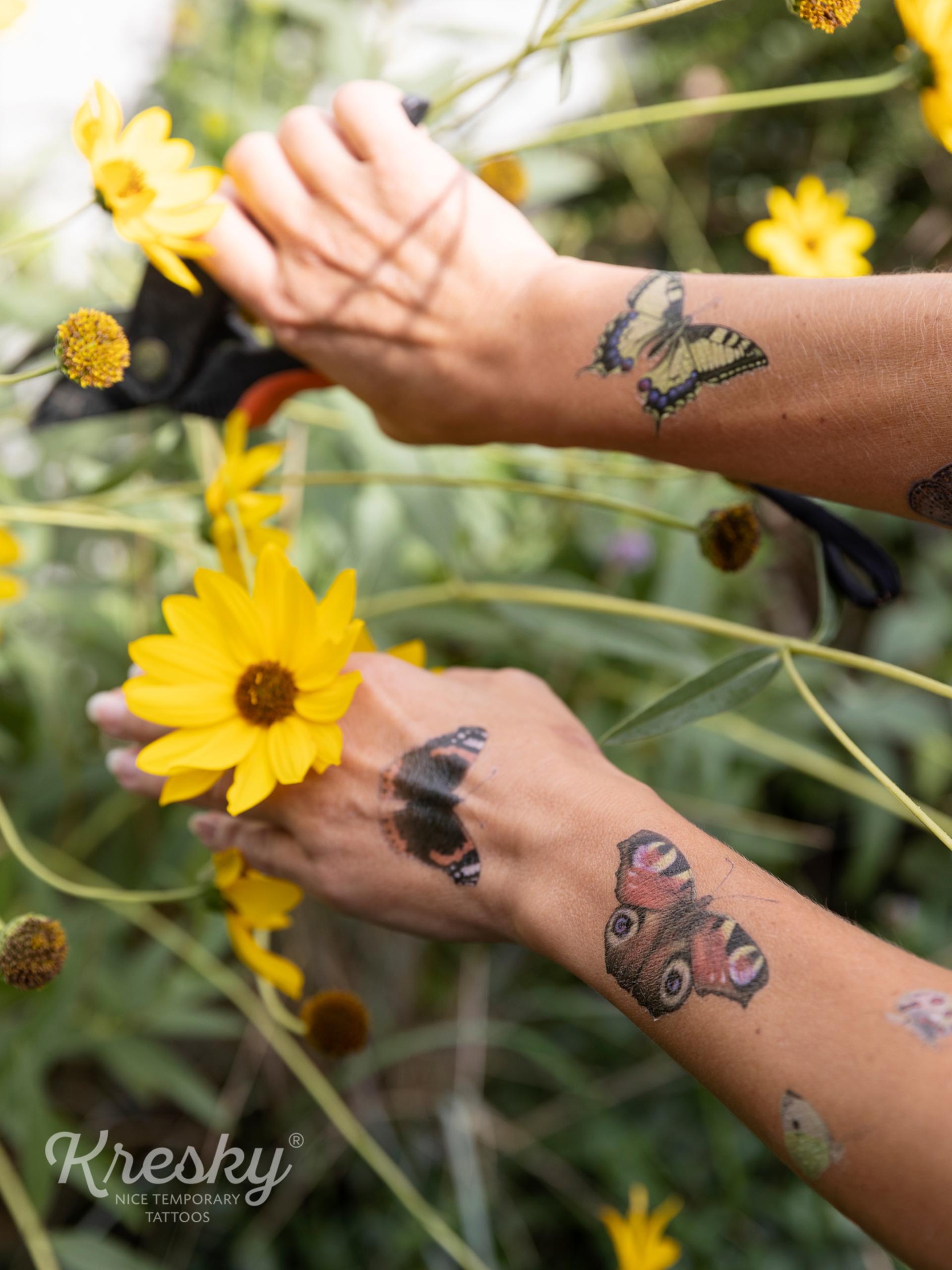 Dočasné tetovačky neaplikujte na citlivú pokožku, v blízkosti očí alebo v prípade alergie.