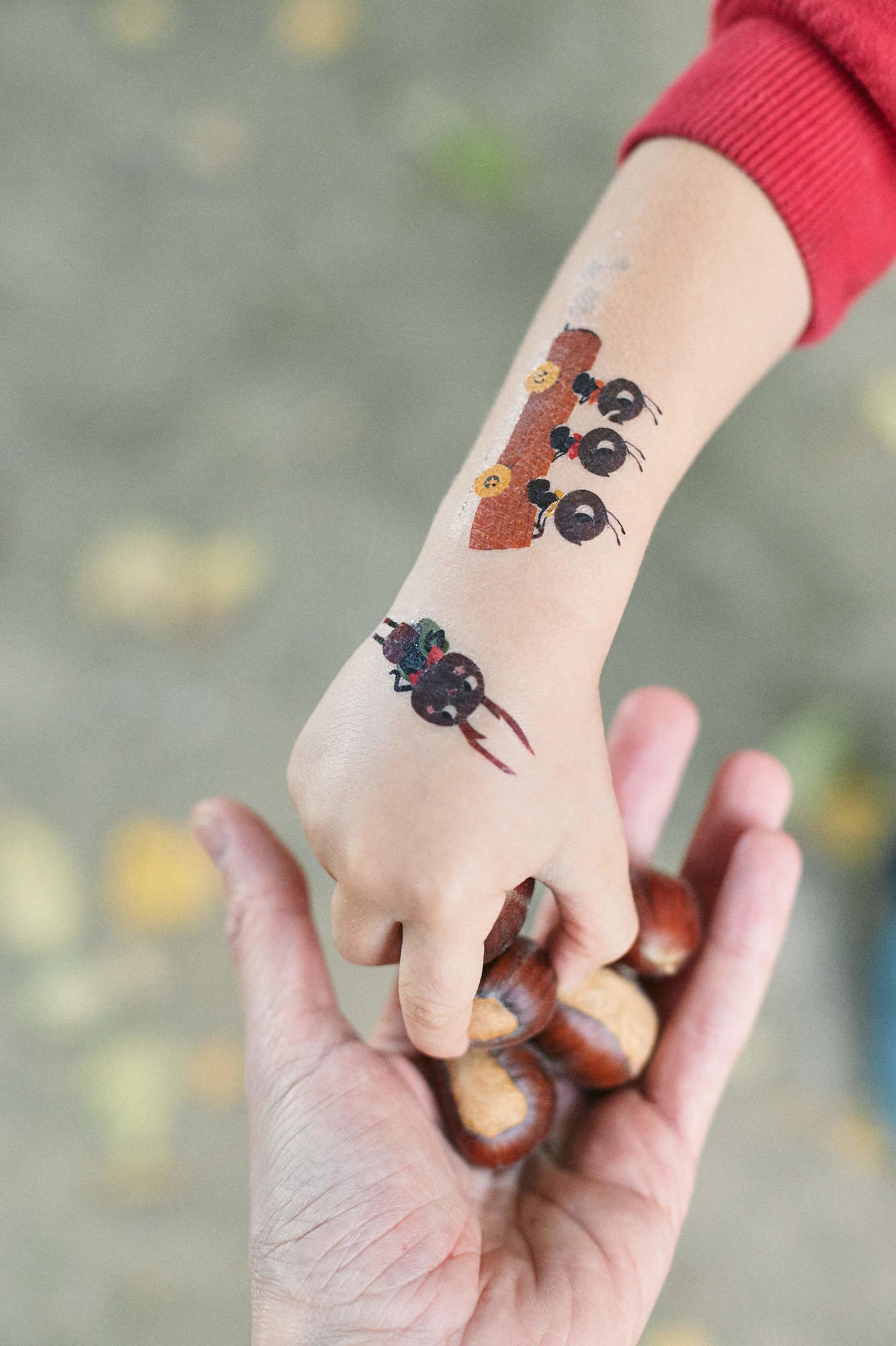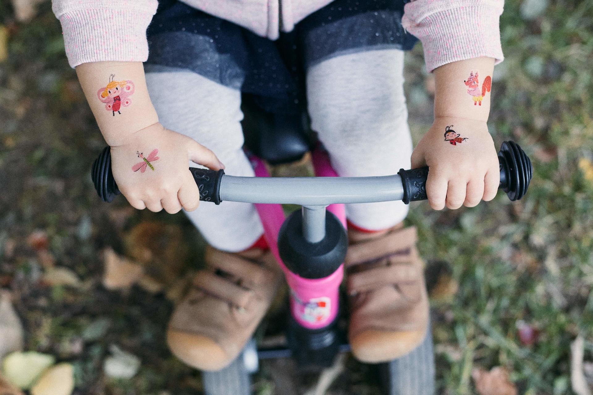 Dočasné tetovačky neaplikujte na citlivú pokožku, v blízkosti očí alebo v prípade alergie.