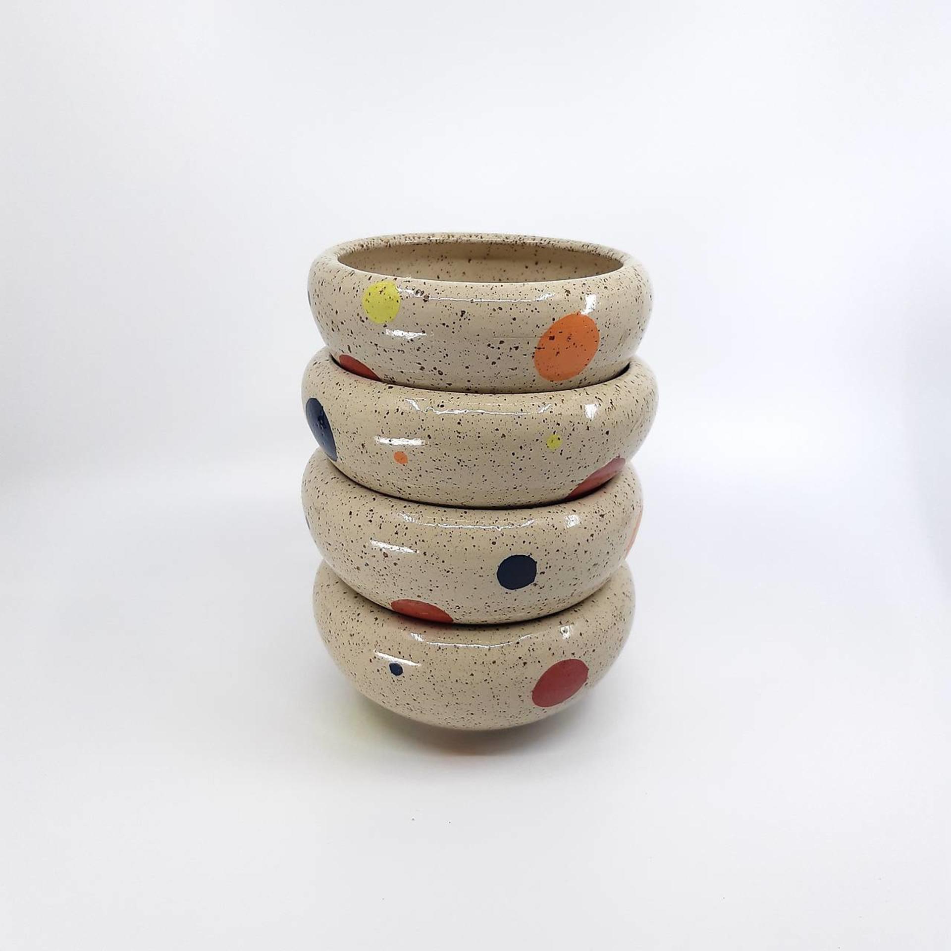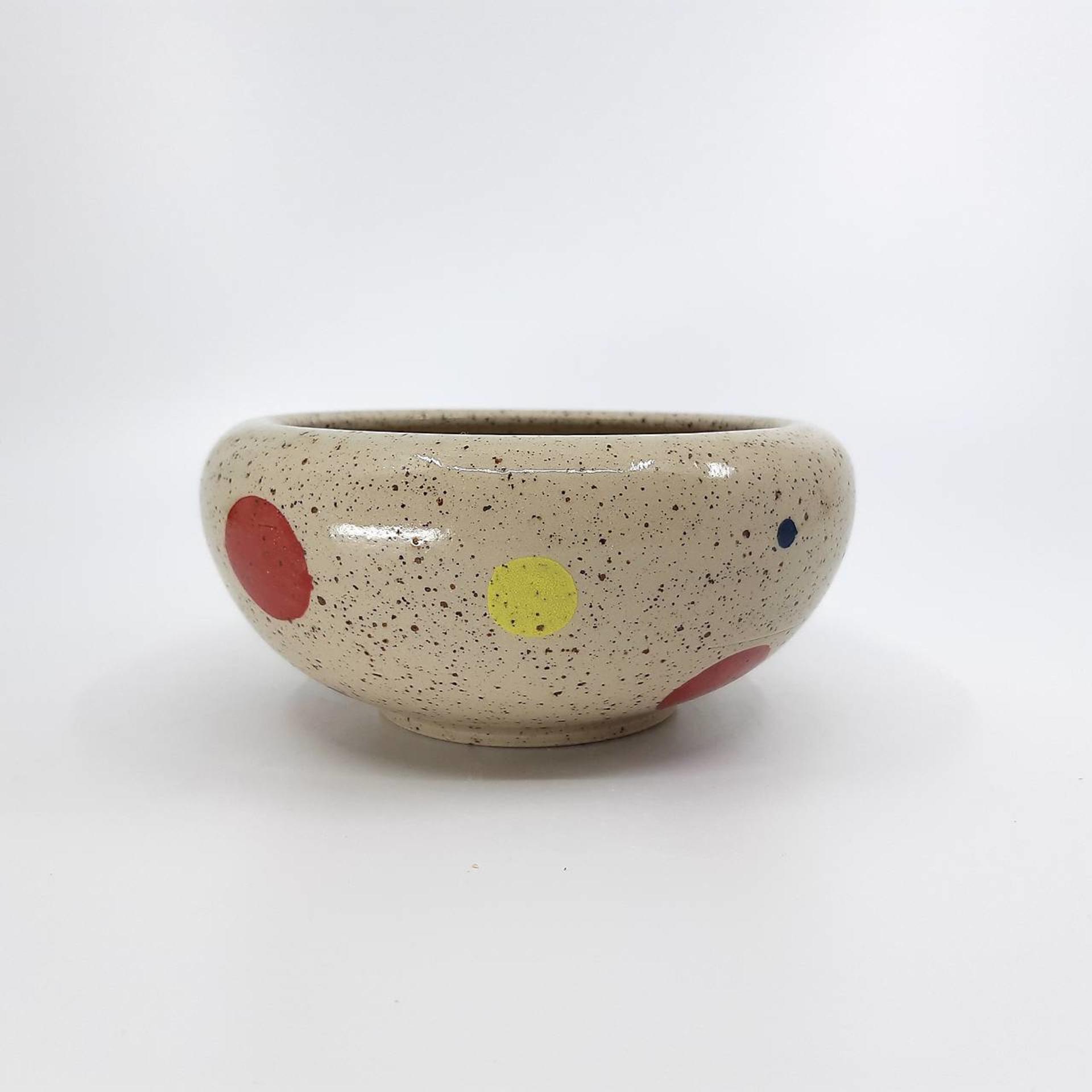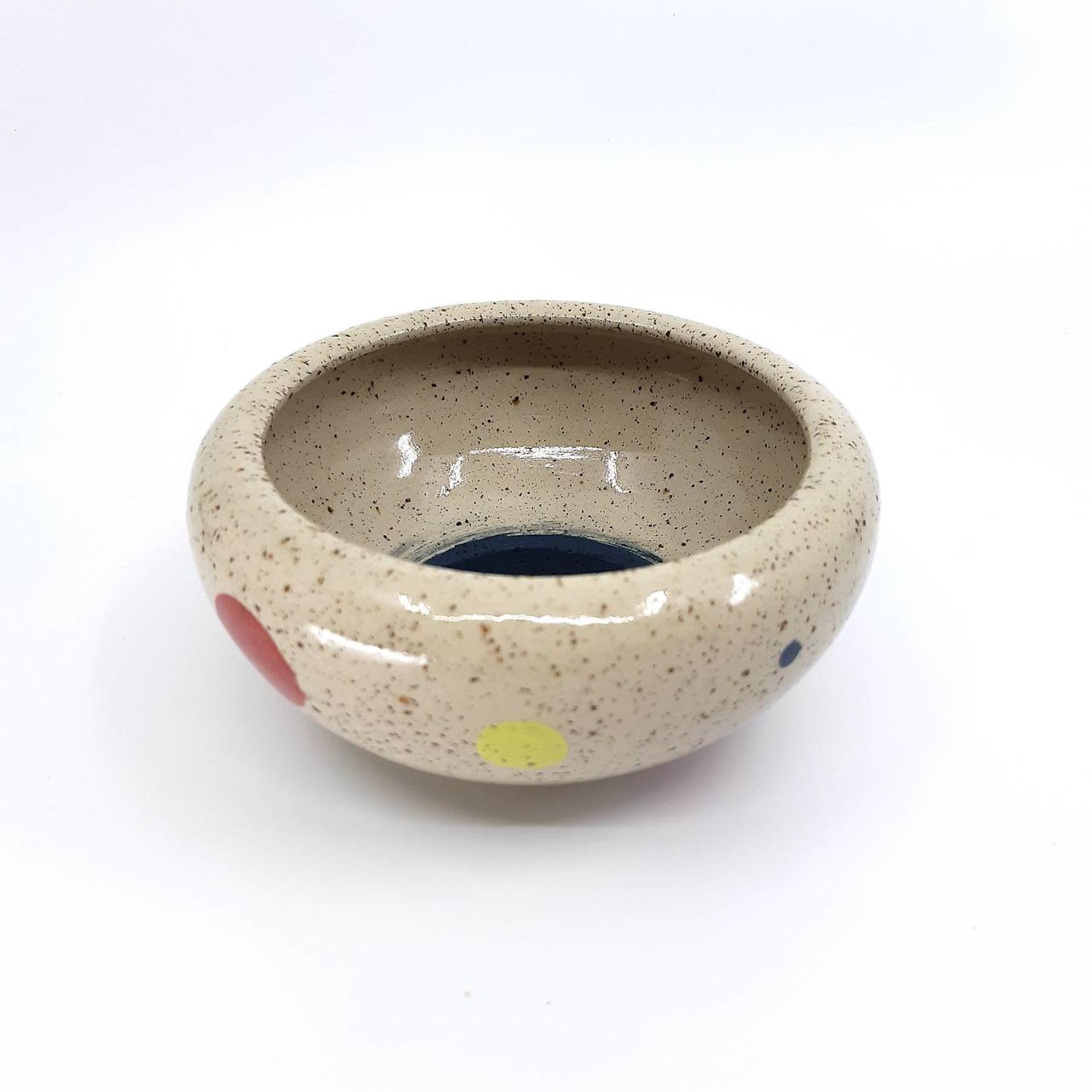 Veselá kameninová miska celoglazovaná transparentnou glazúrou.