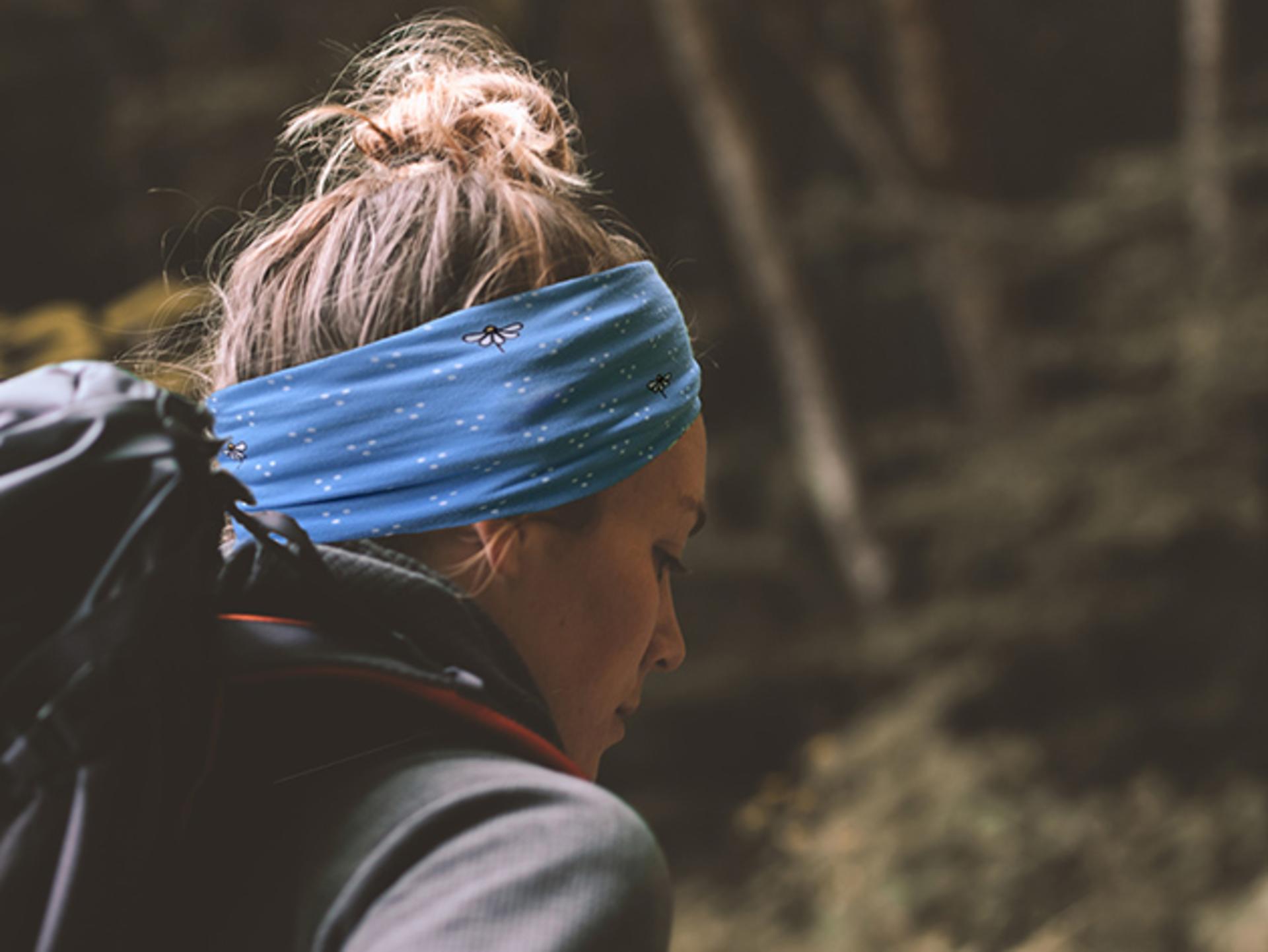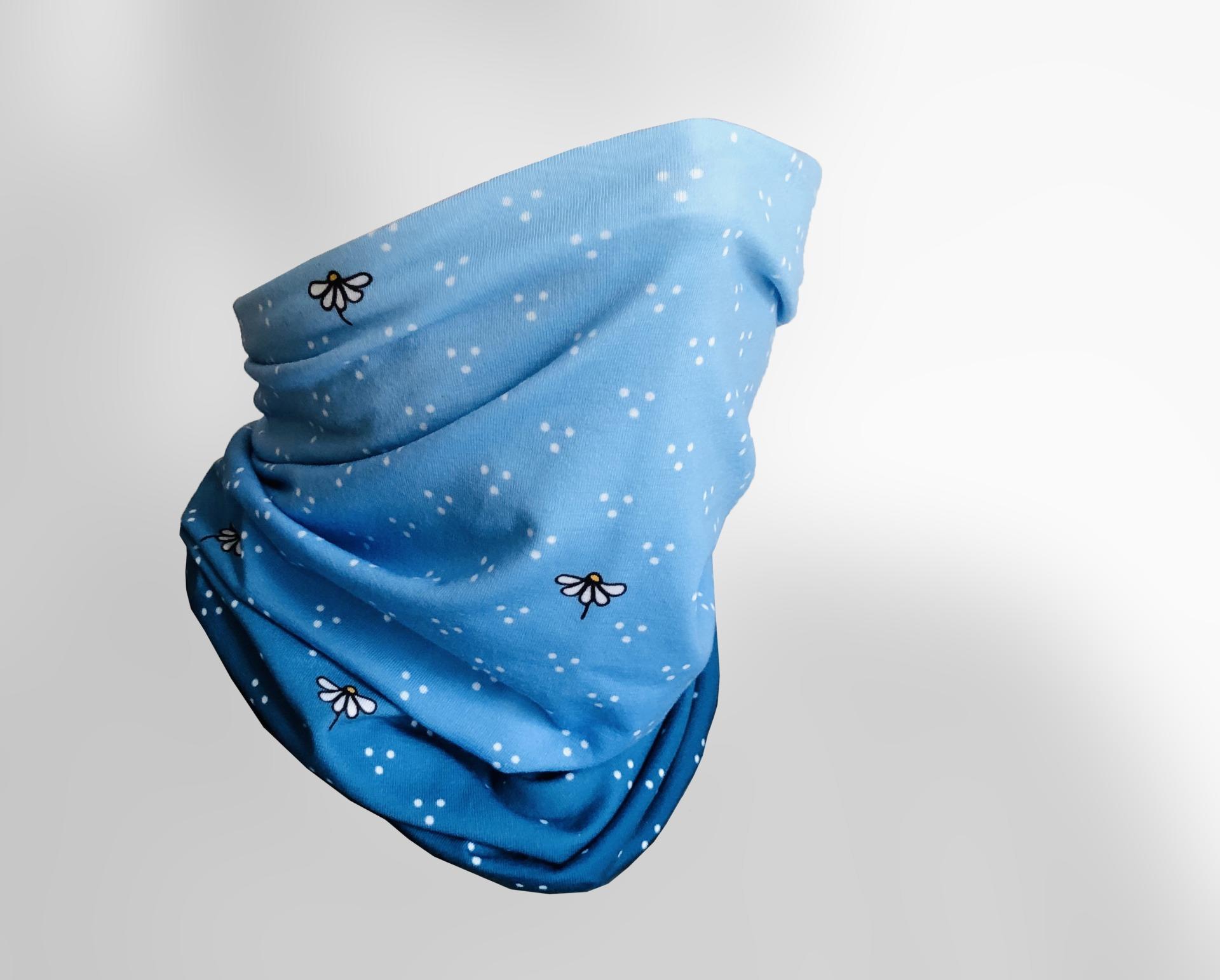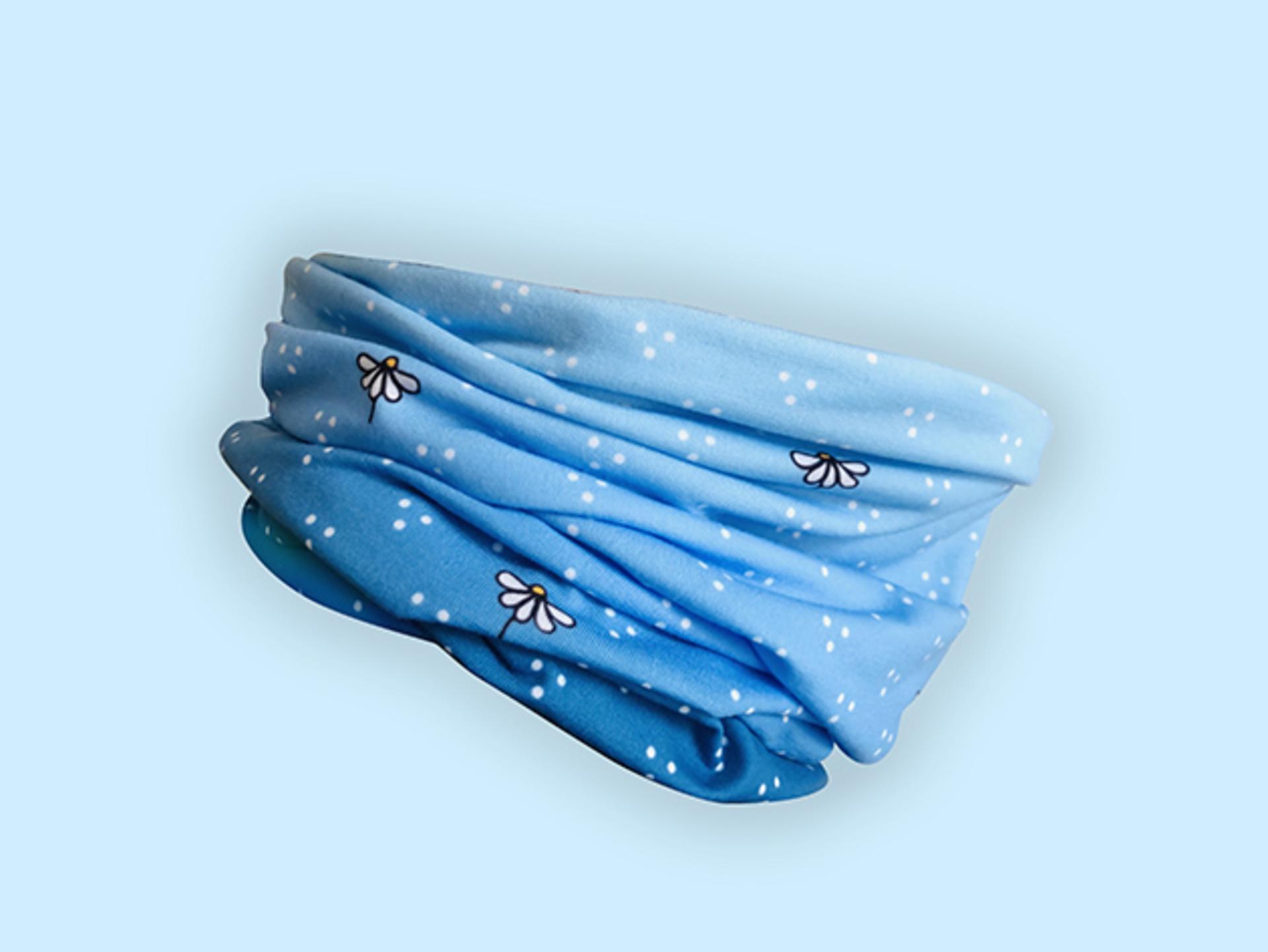 Veselá multifunkčná šatka s margarétkami a gradientom modrej (od svetlunkej po tmavú)