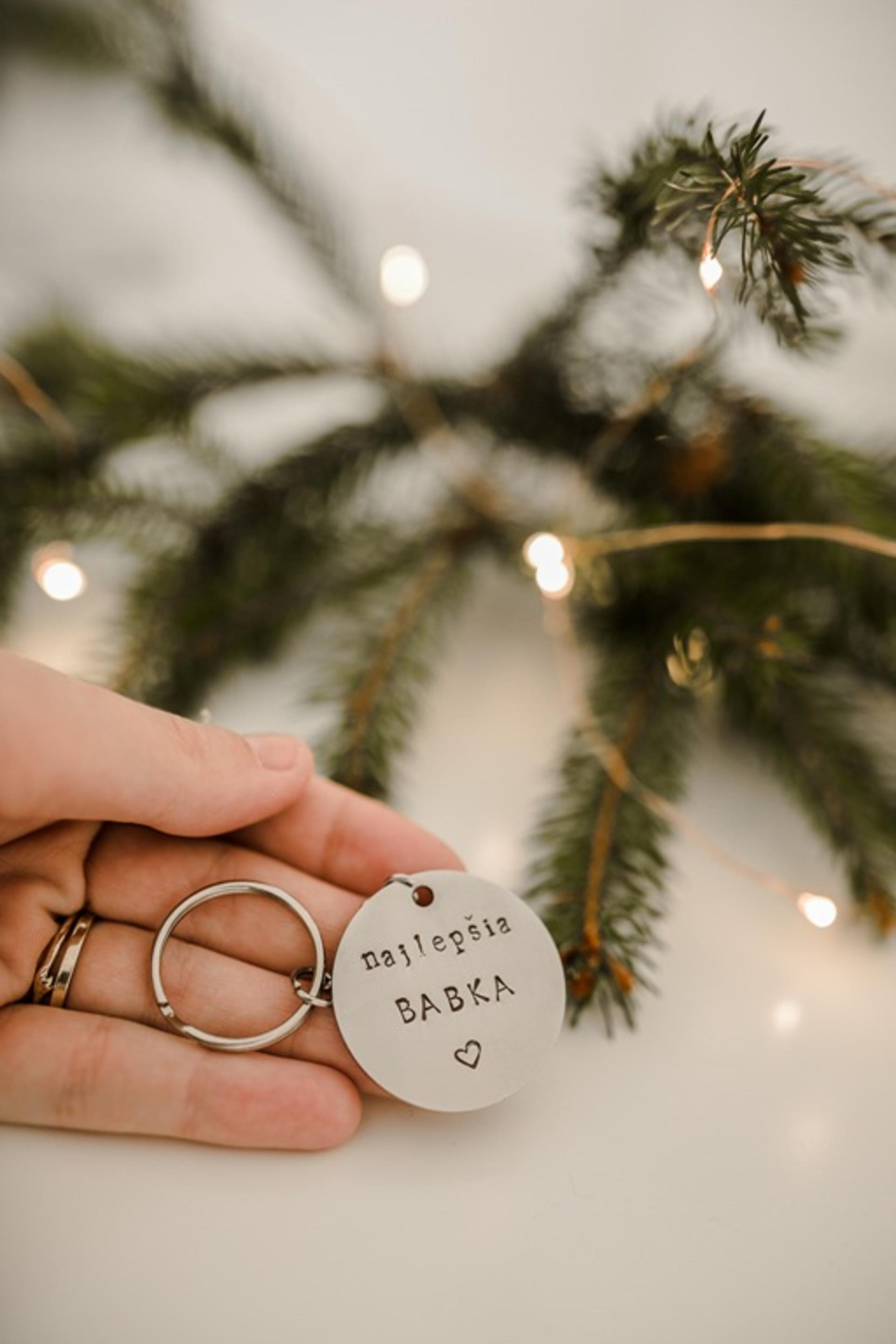 Nerezový prívesok striebornej farby s ručne vyrazeným textom "najlepšia BABKA" a vyrazeným srdiečkom.