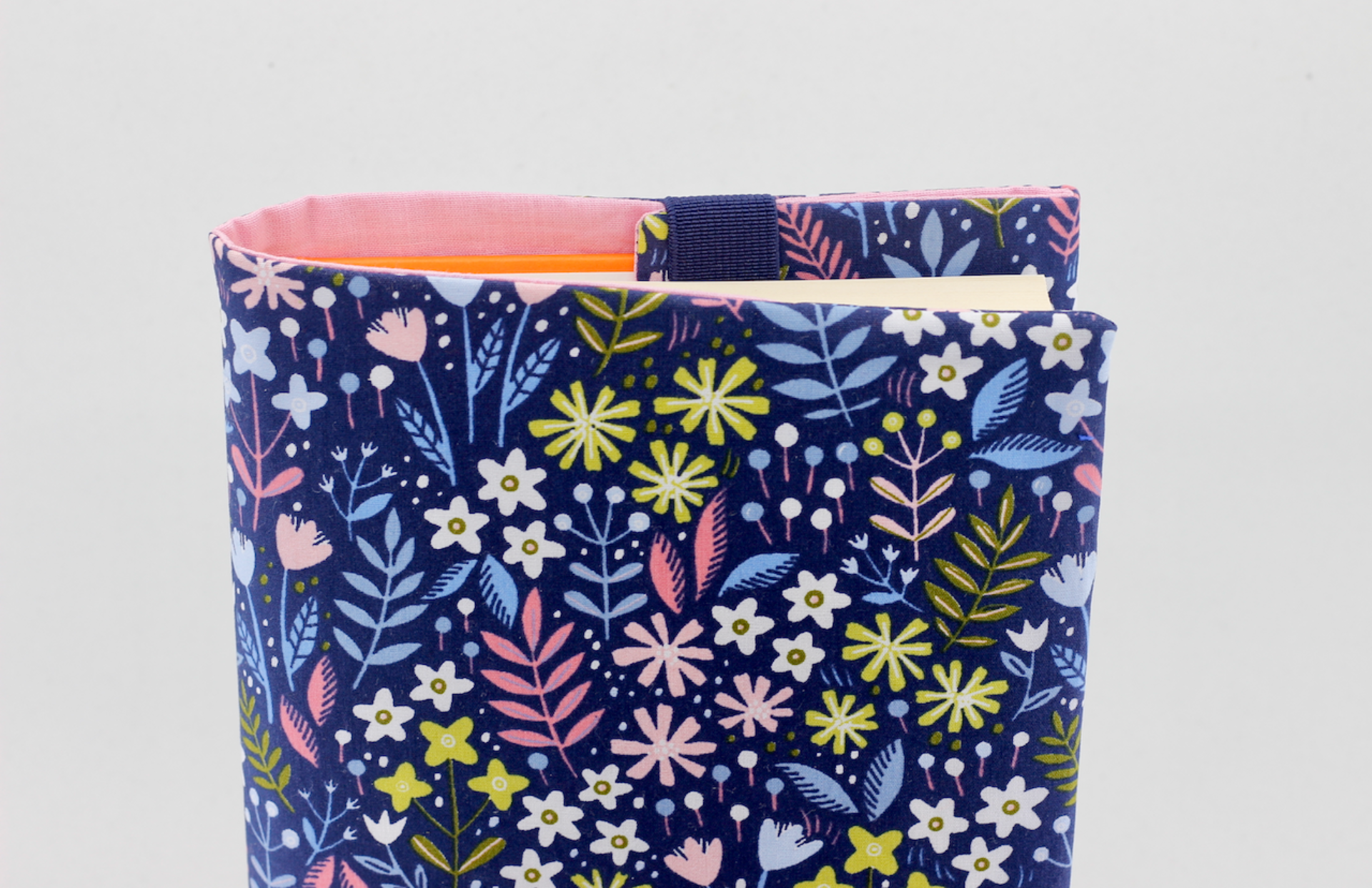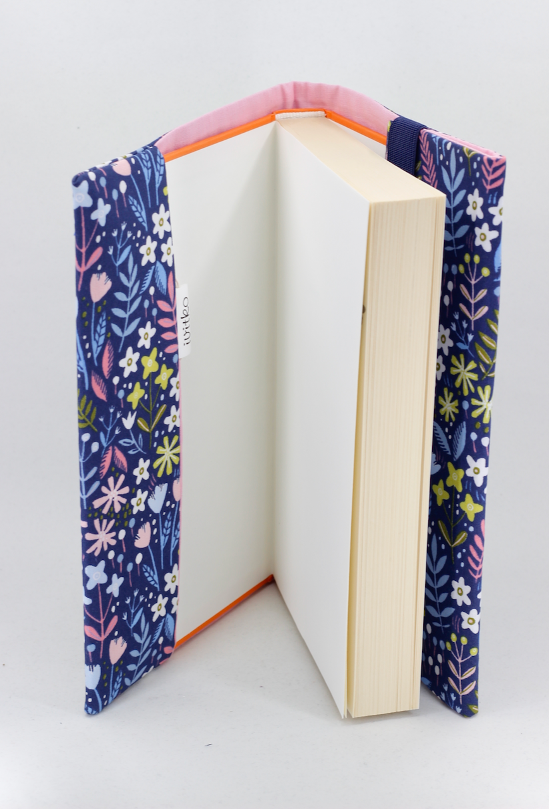 Predná časť obalu je zošitá napevno zatiaľ čo zadná je flexibilná - zakladá sa za gumičku a tak je obal dobrý na tenkú aj hrubšiu knihu.