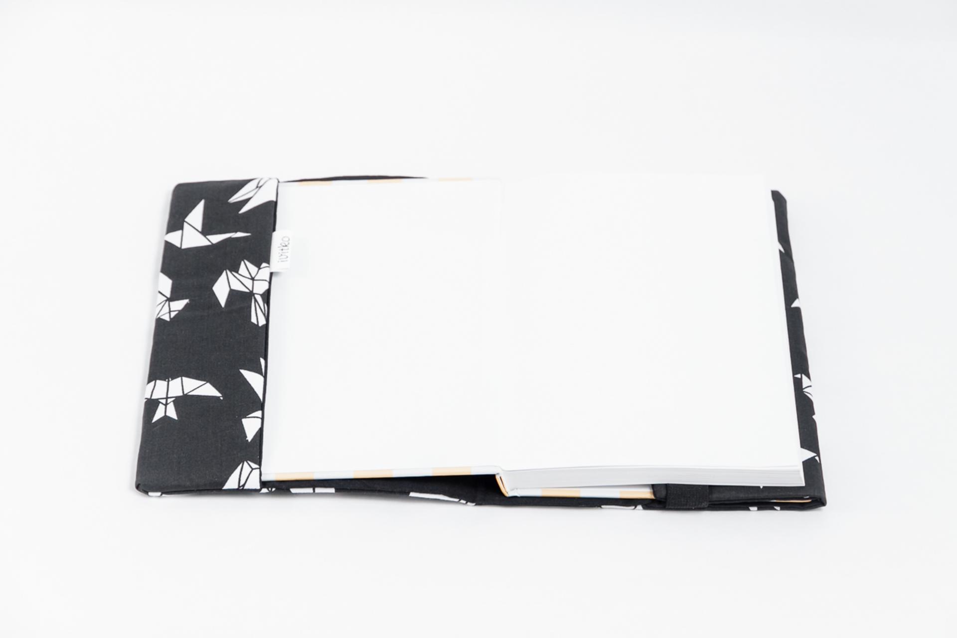 Predná časť obalu je zošitá napevno zatiaľ čo zadná je flexibilná - zakladá sa za gumičku a tak je obal dobrý na tenkú aj hrubšiu knihu. A keď máš knihu zatvorenú, môžeš gumičku natiahnuť tak, aby sa kniha neotvárala. No super, nie?