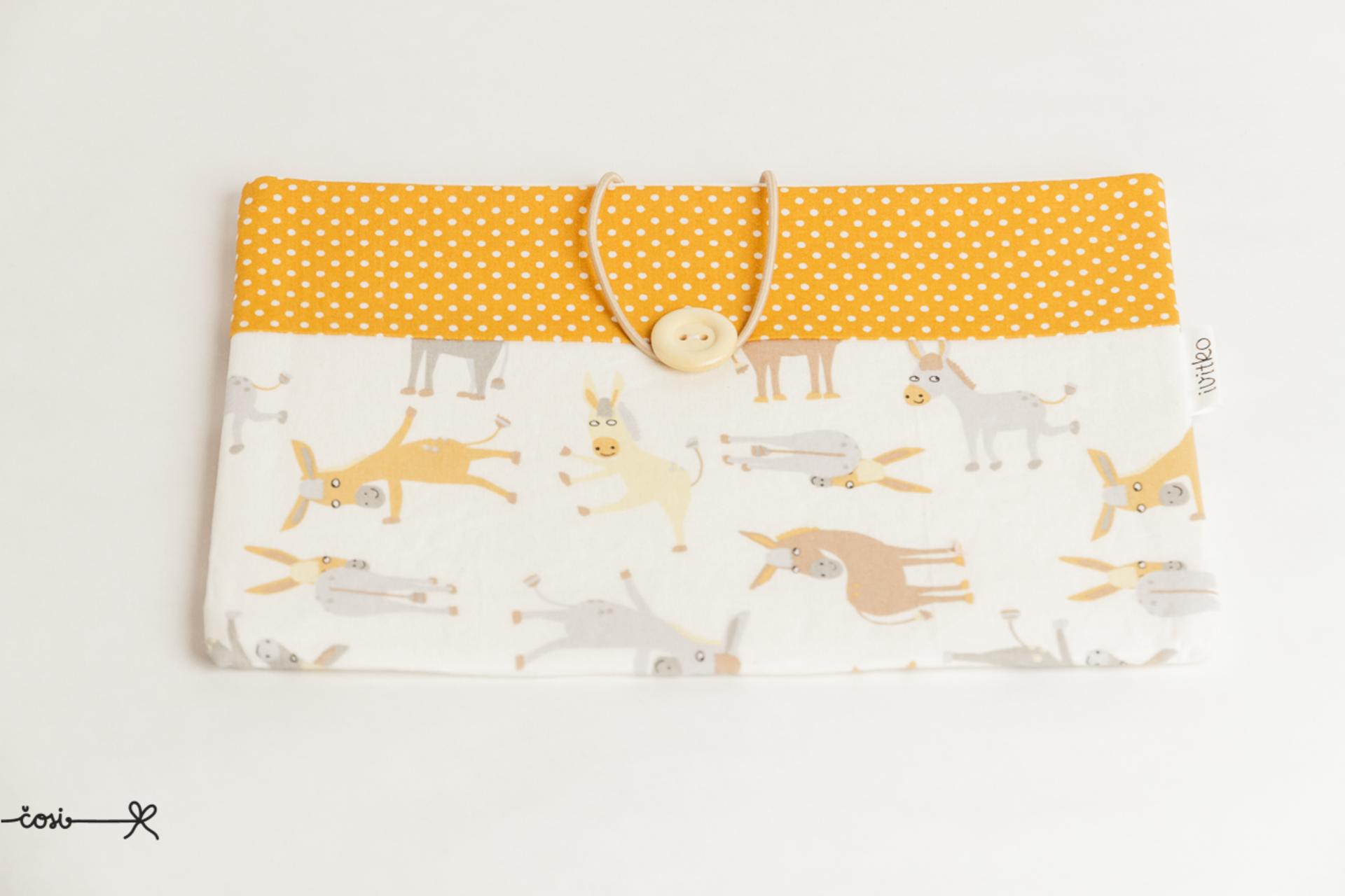 Nosíte knihu v kabelke a kým ju dočítate je obitá, pokrčená, o proste hrôza... Alebo máte zošit, papiere a neviem čo ešte a v kabelke sa rozsypú, roztratia a vás ide poraziť. Obal na knihu, zošit alebo dokumenty je podšitý zvnútra bavlnou, vyplnený vrstvou vatelínu, takže je obal pevný a vašu knižku uchráni :) Zapínanie na gumu a gombík.