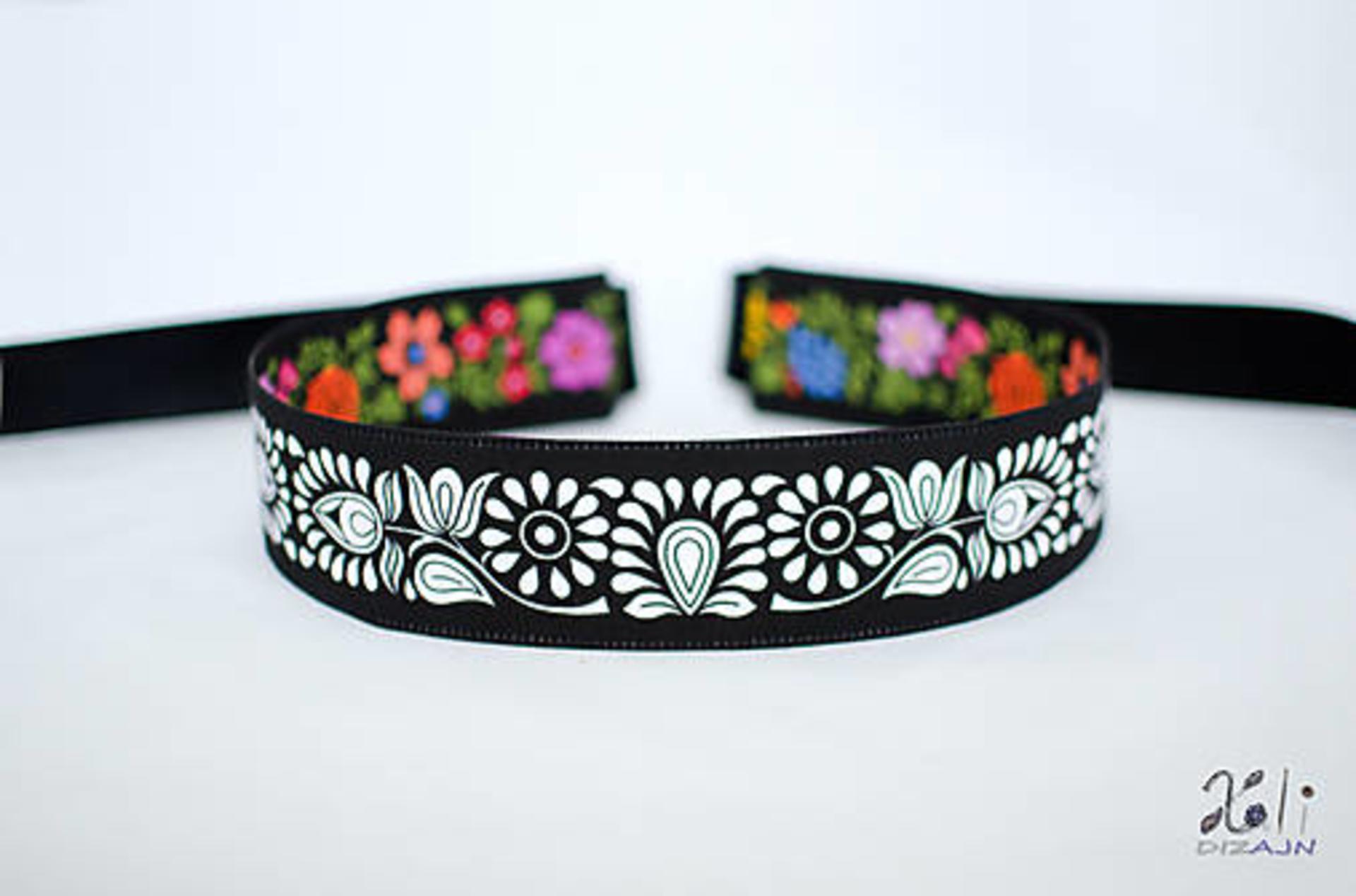 K opasku je možné zakúpiť si folk motýlika, čelenku, stuhu na vlasov, choker alebo náramok s tým istým vzorom.