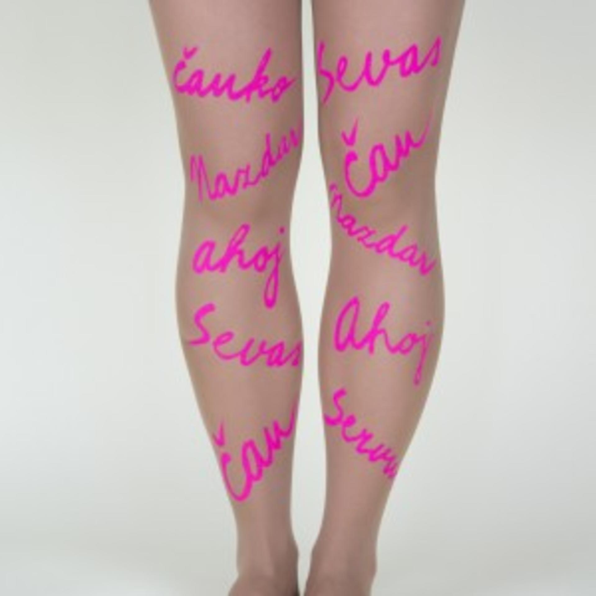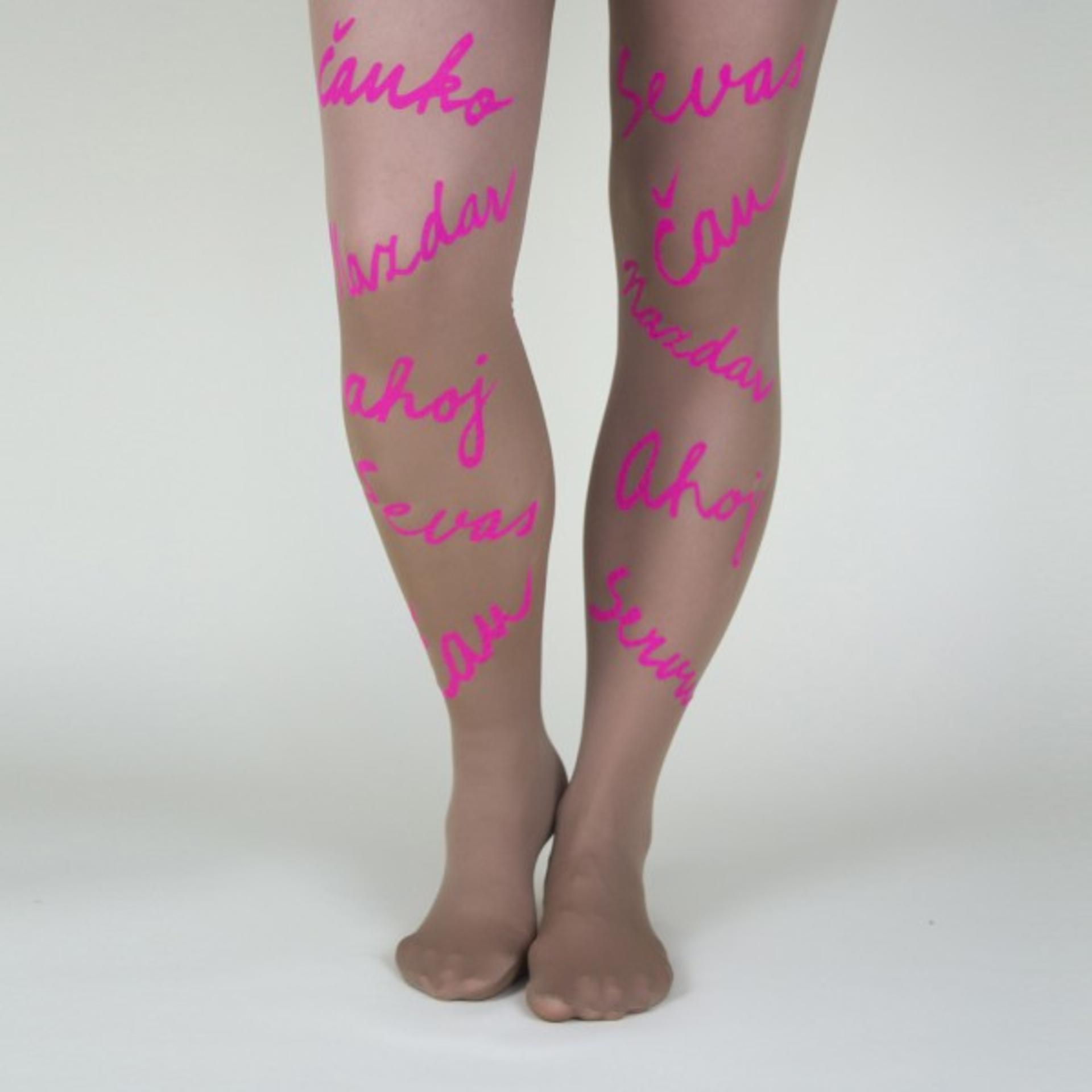Ahoj, čau, sevas, zdravia tieto celonožky už z diaľky. Sú priateľské, neformálne a vždy dobre naladené. A ako sa zdravíte so svojimi priateľmi Vy? Umiestnenie potlače: Predná a zadná časť oboch nôh Veľkosť: S, výška 158-164 cm, obvod bokov 100-112 cm Zloženie: 92% polyamid, 8% elastan Hrúbka: 40 DEN