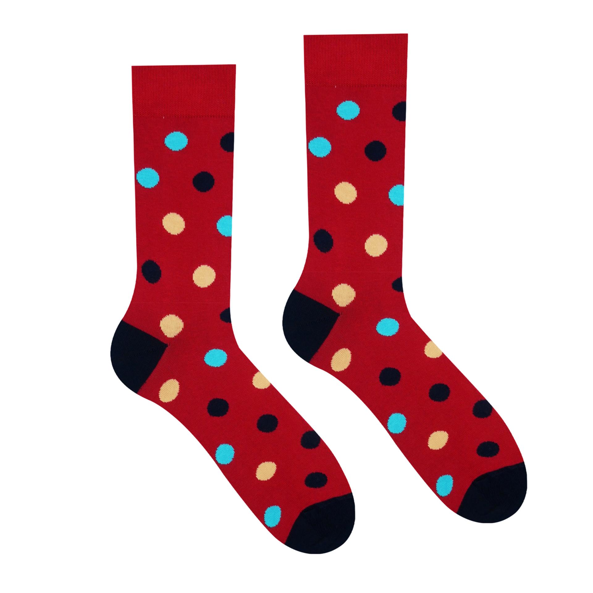 Veselé bavlnené ponožky v bordovom odtieni a tradičnými bodkami sú elegantným, ale stále veselým doplnkom tvojho outfitu. Ideálne pre každú nohu, stačí si vybrať správnu veľkosť