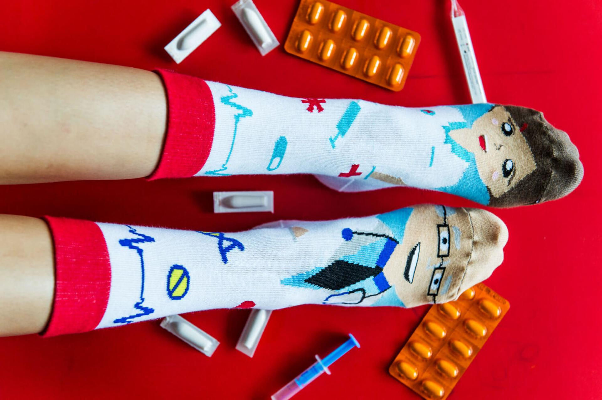 Veselé ponožky, ktoré sme vytvorili pre každého doktora, doktorku, zdravotníka či sestričku. Zlaď do práce aj svoje ponožky a pobav kolegov a svoje okolie.