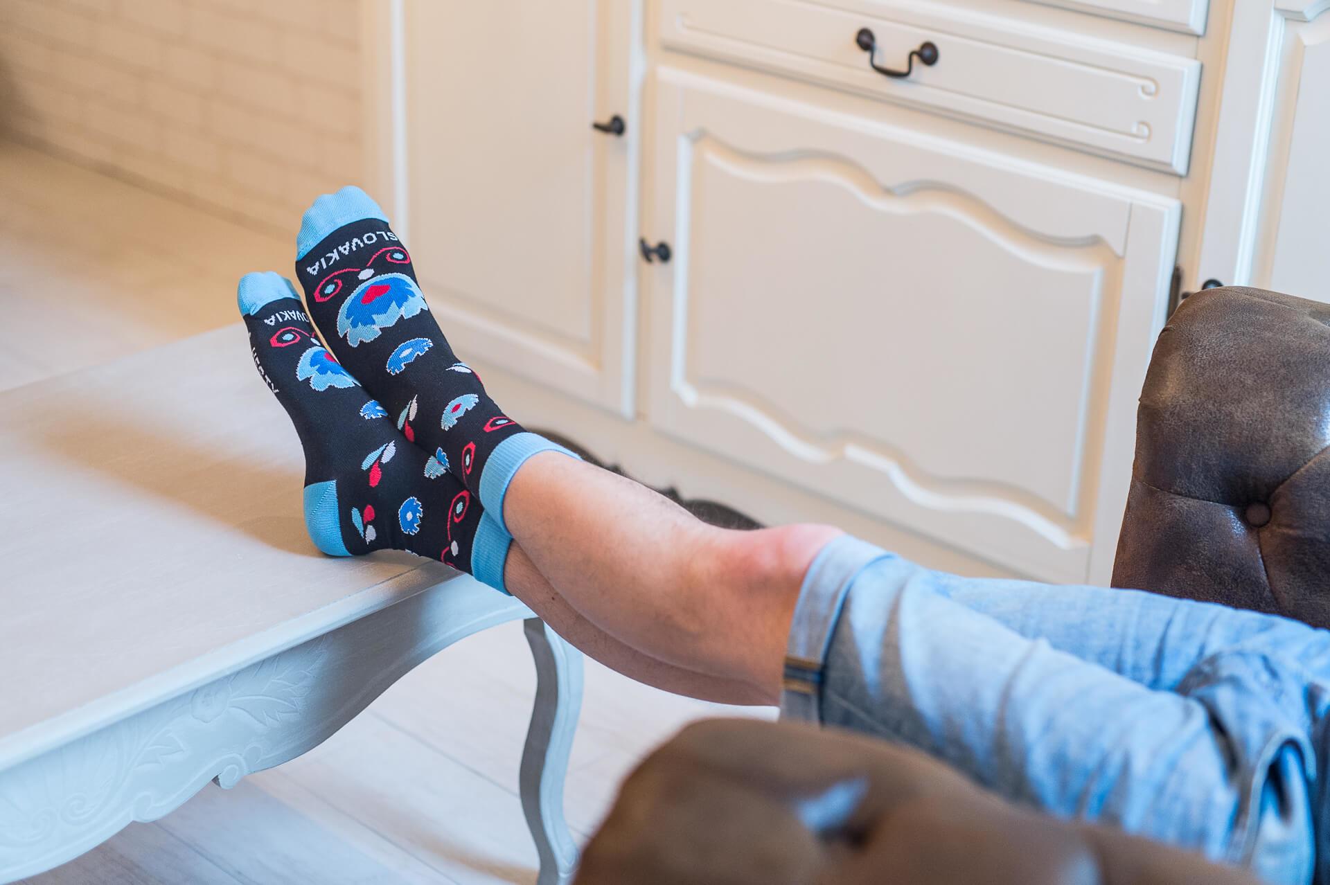 Veselé ponožky s tradičným ľudovým motívom pre milovníkov folklóru. Obleč sa do tradícií a ukáž dobrú náladu. S našimi veselými ponožkami rozveselíš každého folkóristu či milovníka farebných ponožiek.