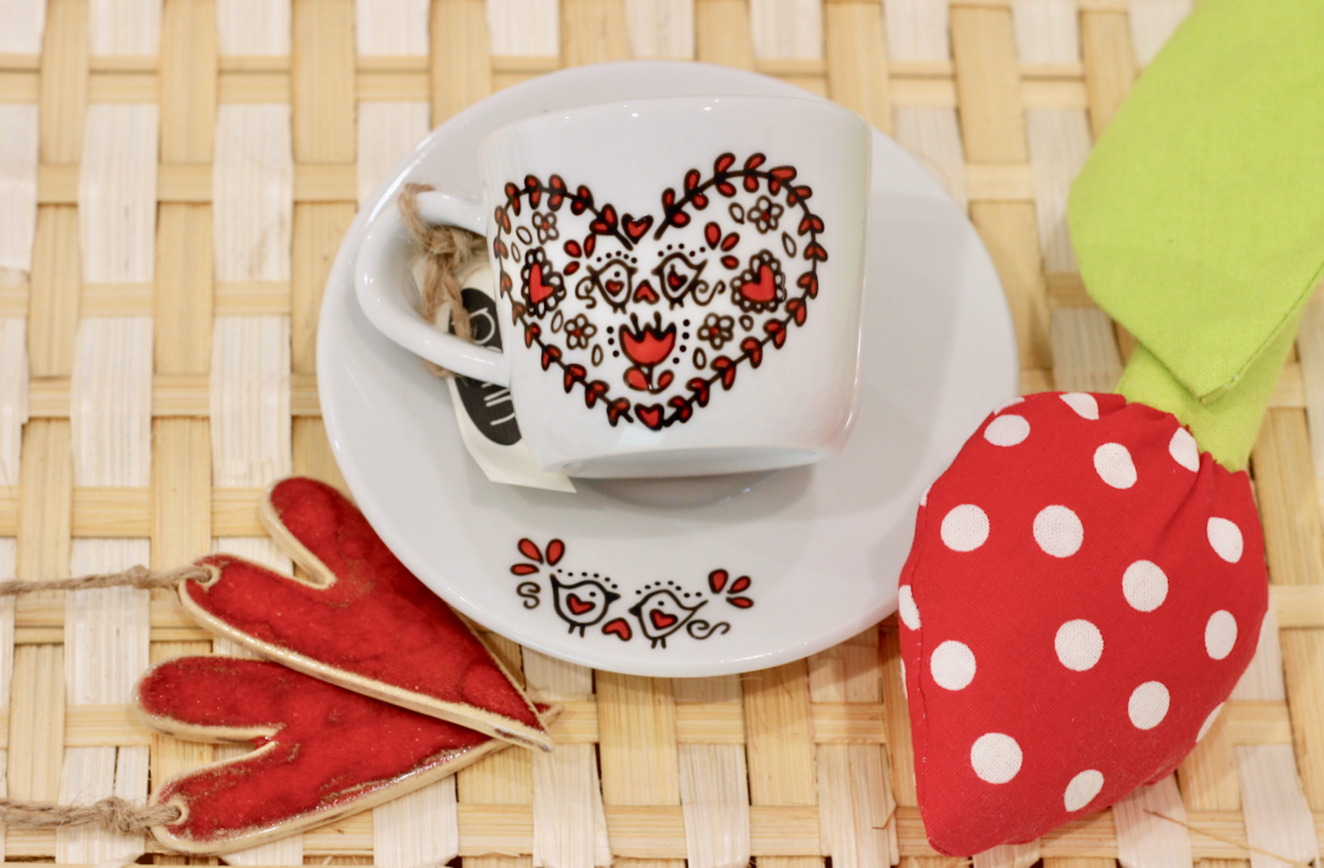 Porcelánová šálka s podšálkou, ručne maľovaná autorským vzorom od Polin.