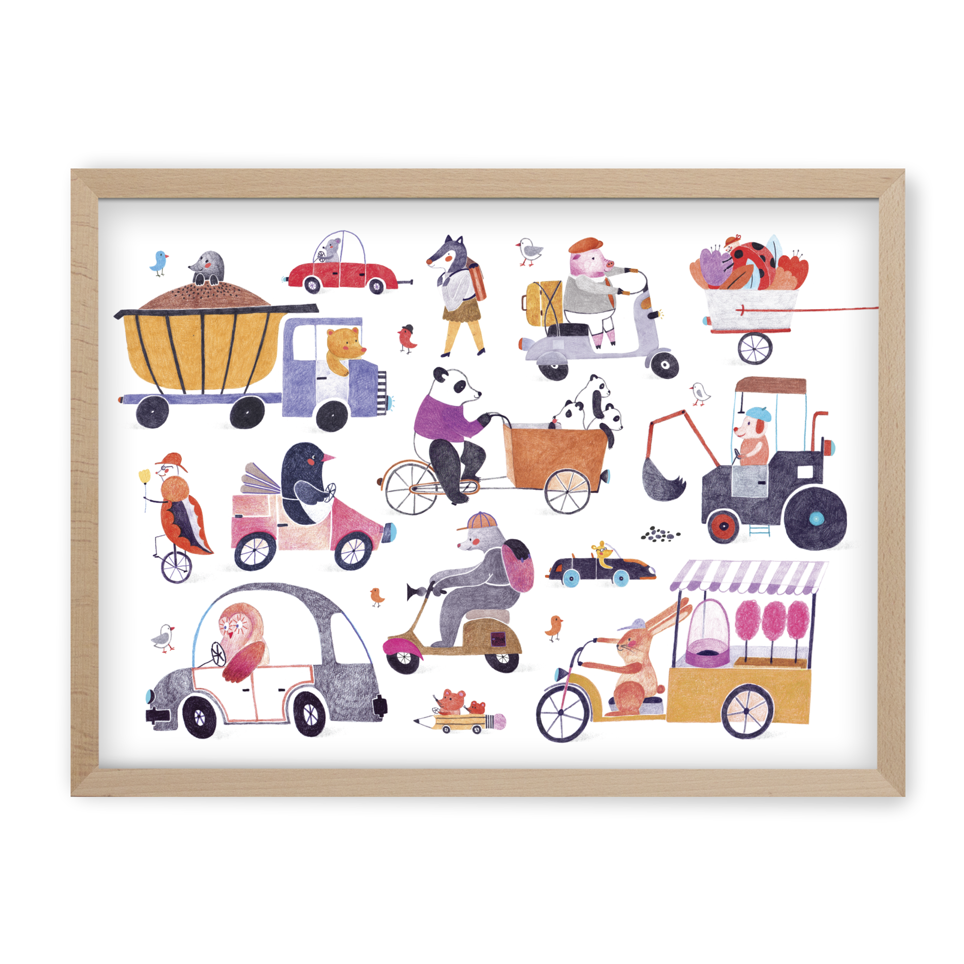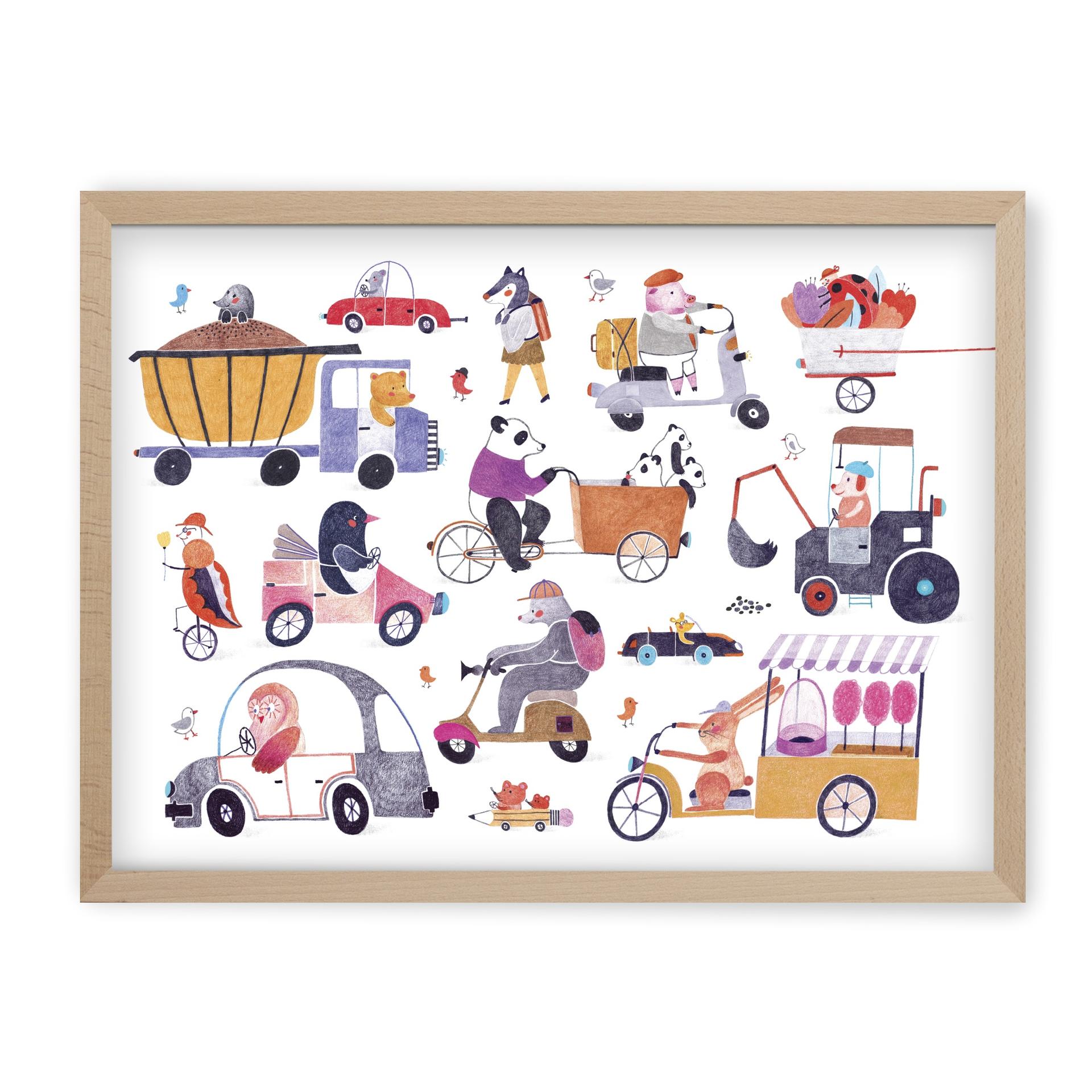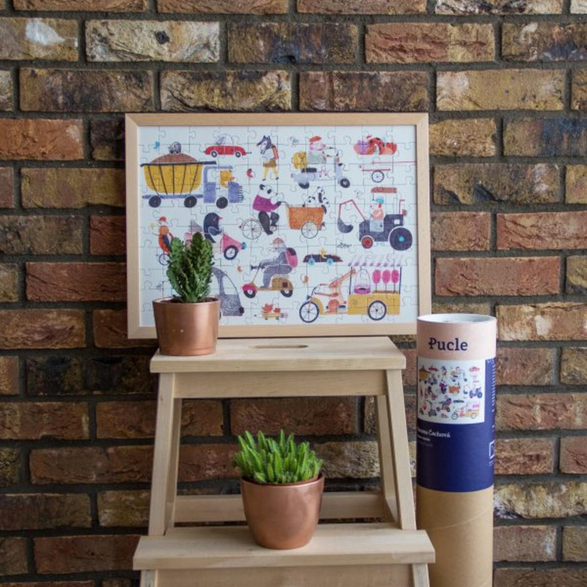 Krásne puzzle ilustrované Simonou Čechovou. Kam sa ponáhľa malá myš v ceruzke? A čo panda? Stíha prasiatko na skútri ranné povinnosti? Predá dnes zajo dostatok cukrovej vaty, aby mohol nakŕmiť malých zajdov? Snívajte spolu s nami o radostiach a starostiach týchto hrdinov prostredníctvom Simoninej ilustrácie Ráno v meste. Aké príbehy sa odohrávajú v rannom zhone? Máte pocit, že aj my sme často súčasťou takejto „zoo“? Počet dielikov:100 Súčasťou balenia je aj drevený masívny bukový rámik a potrebné komponenty, vďaka ktorým puzzle po poskladaní nemusíte lepiť ale jednoducho ich do rámiku zatvoríte a zavesíte na stenu ako bytový doplnok. Puzzle môžete kedykoľvek opäť zo steny zvesiť, rámik otvoriť a puzzle opäť rozoskladať – ako večnú skladačku. Rozmer puzzle – 47 x 33 cm Rozmer puzzle v ráme – 49 x 36 cm