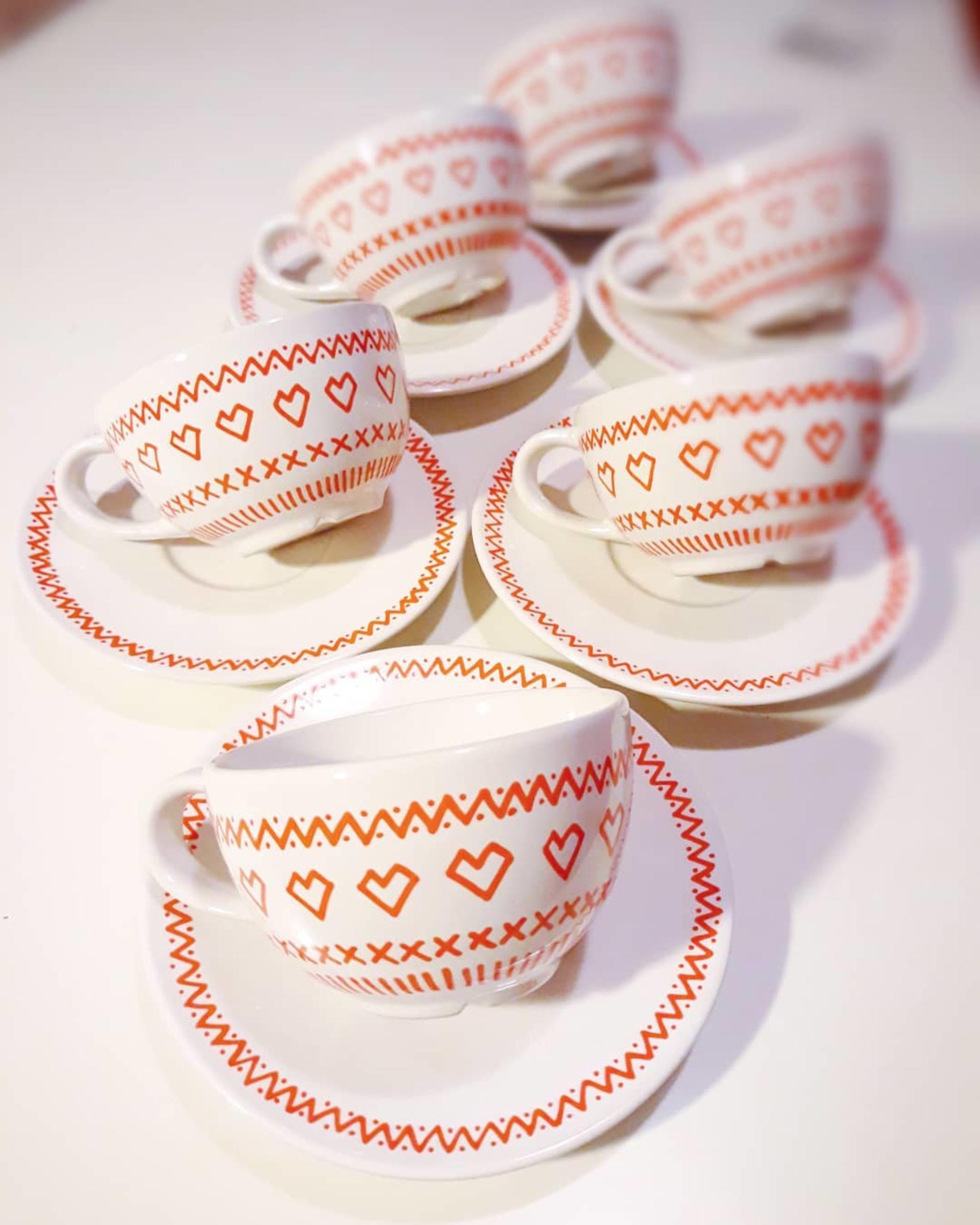 Keramická šálka s podšálkou, ručne maľovaná autorským vzorom od Polin.