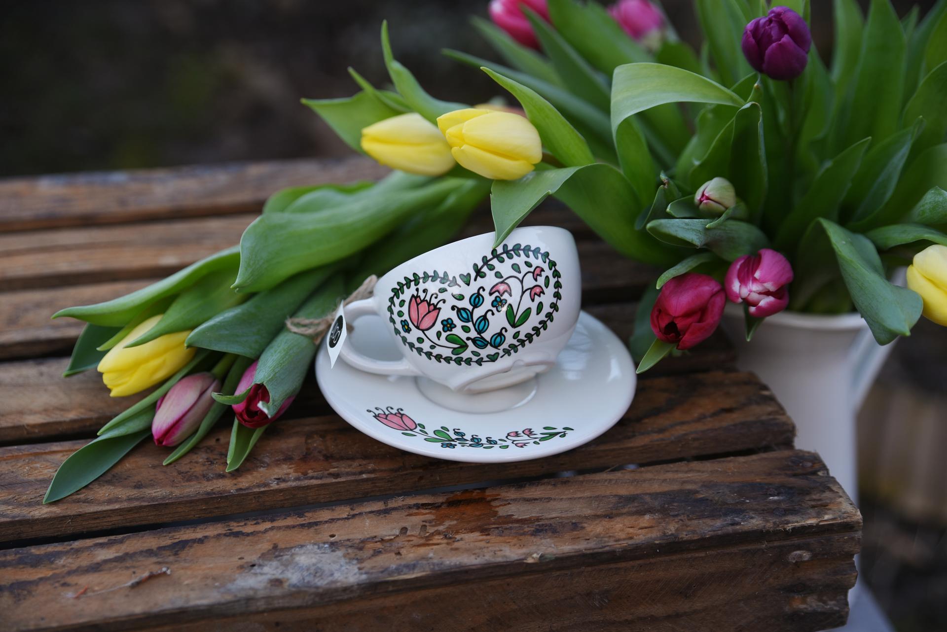 Šálka s podšálkou - jarné srdce