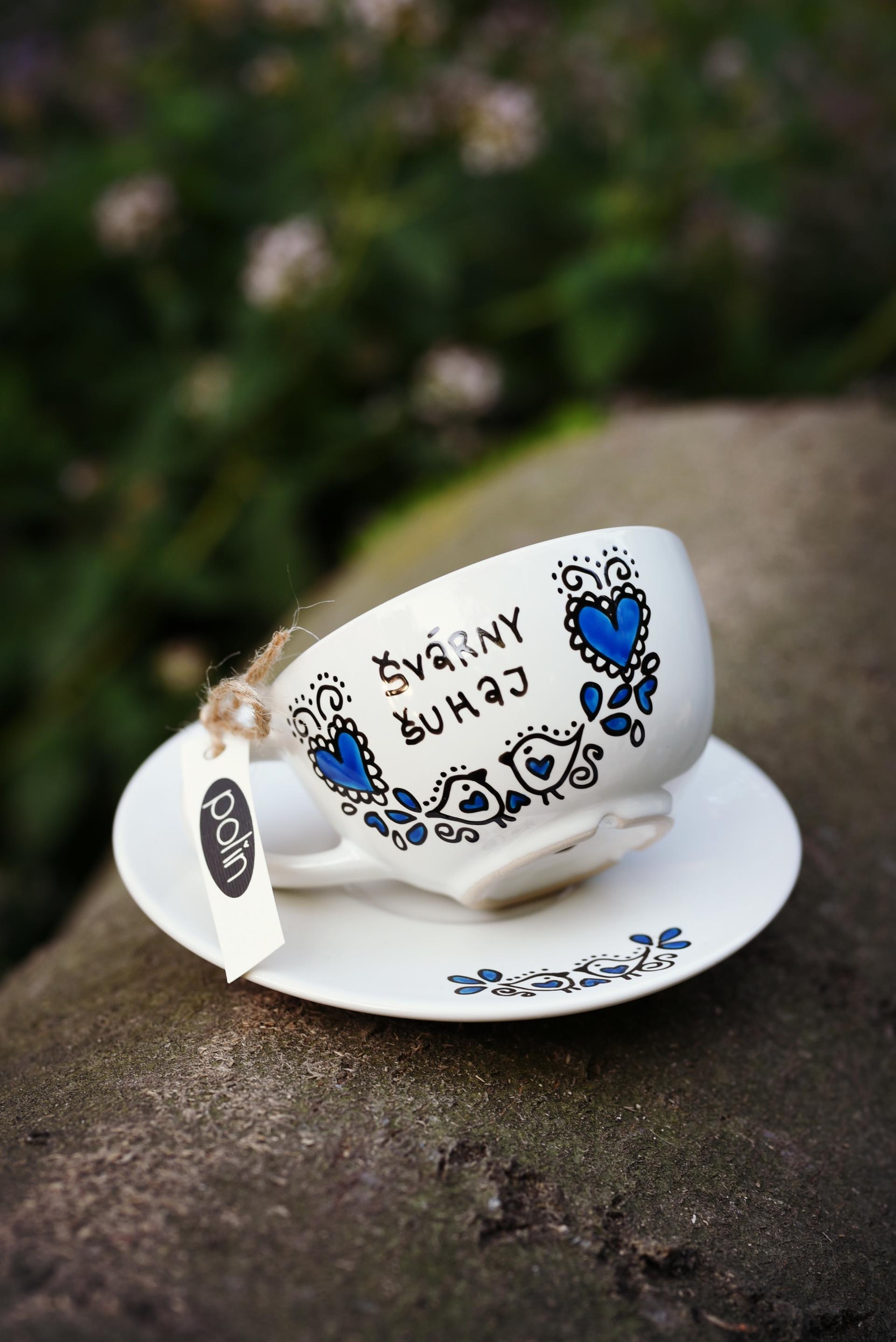 Keramická šálka s podšálkou, ručne maľovaná autorským vzorom od Polin.