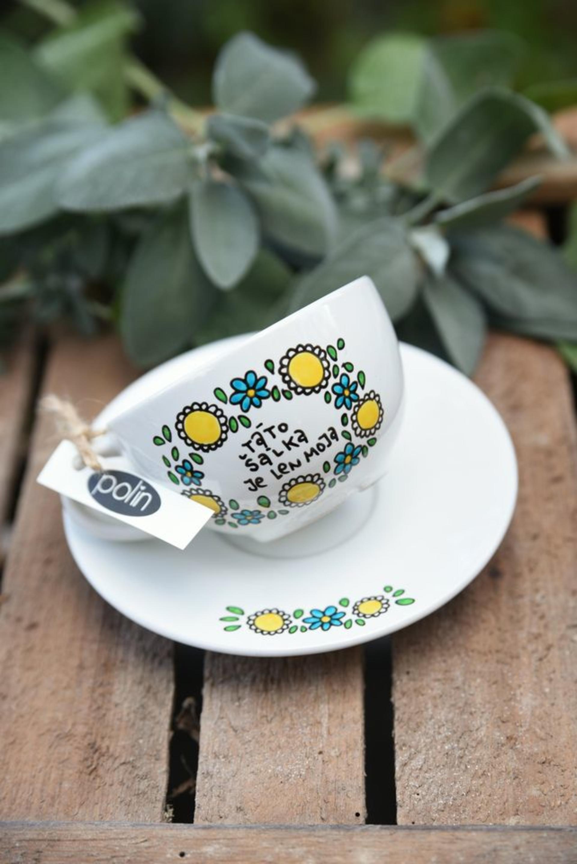 Keramická šálka s podšálkou, ručne maľovaná autorským vzorom od Polin.