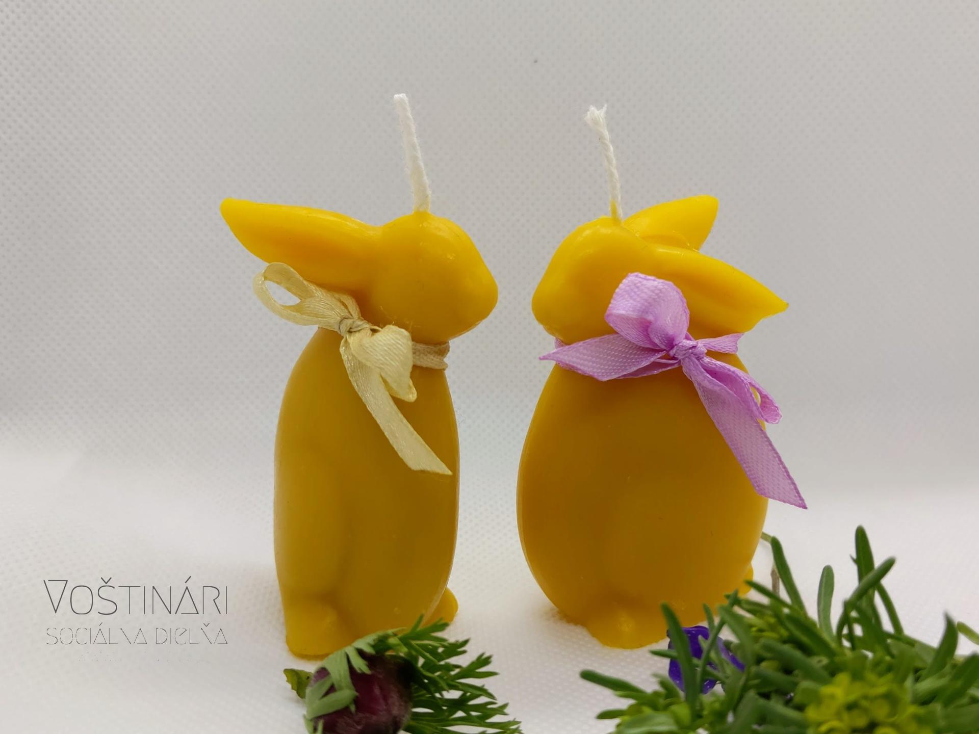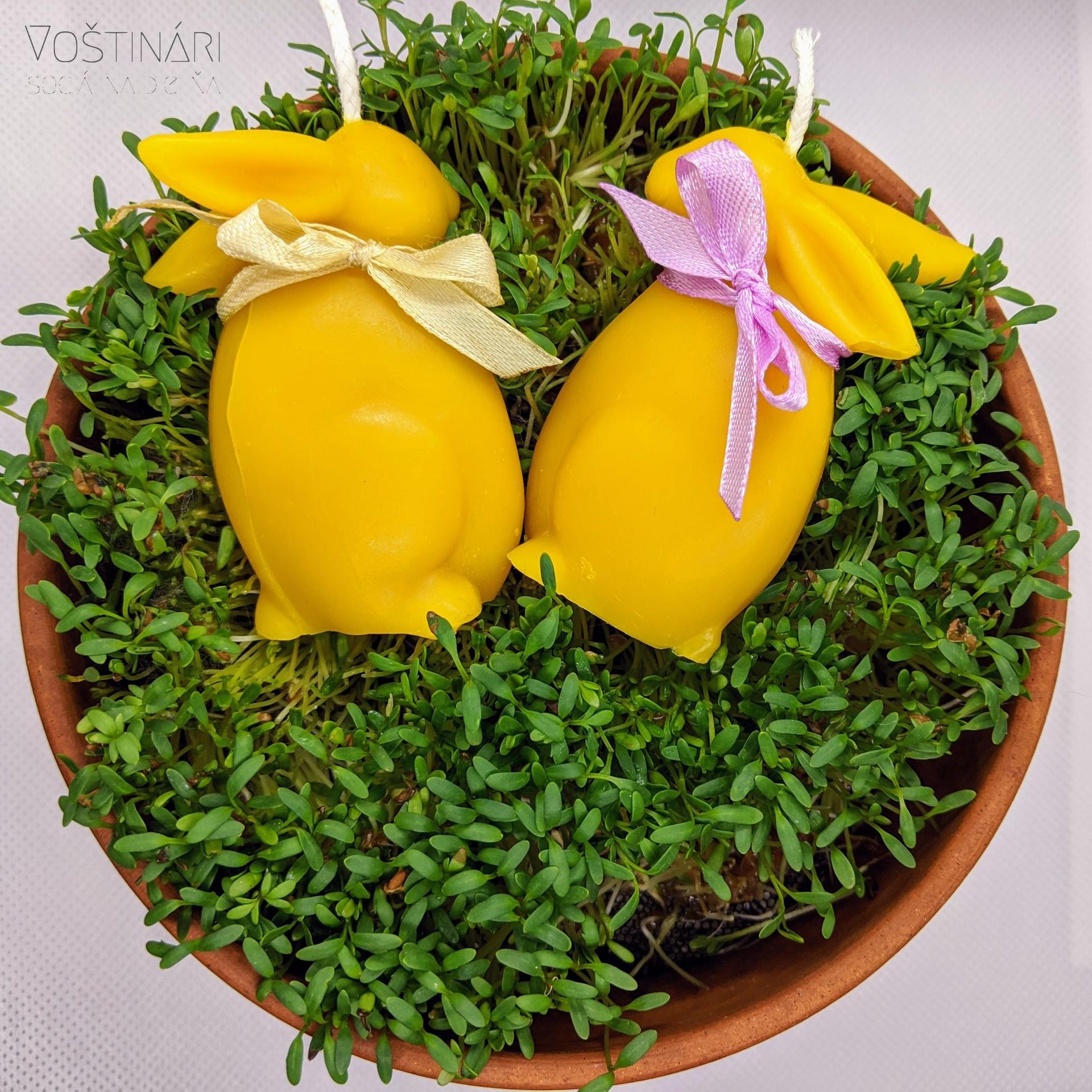Odlievaná sviečka z včelieho vosku v tvare veľkonočného zajačika. Prevoňajte si domov vôňou včelieho vosku.