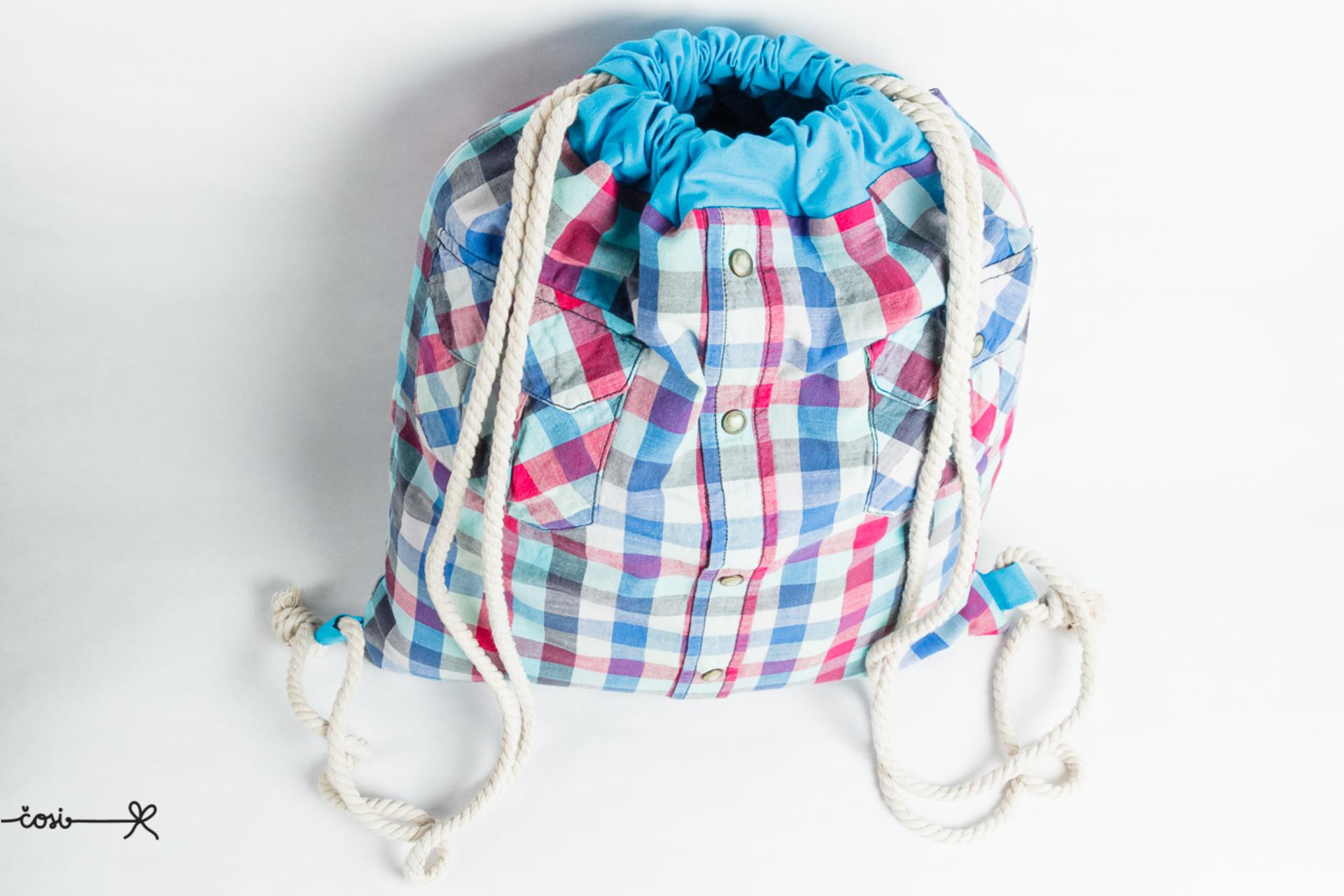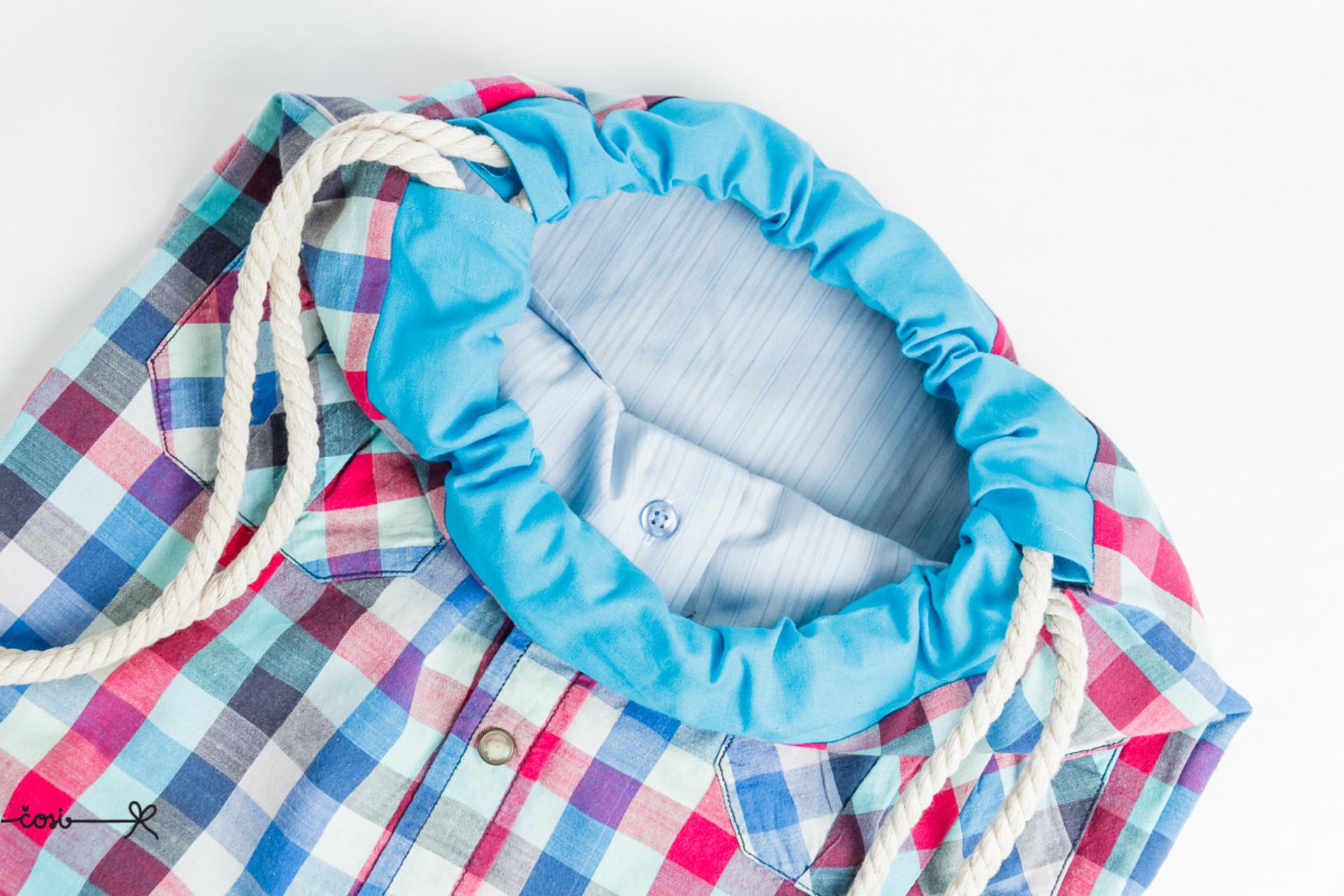 Keď frajer vytriedi asi 20 košieľ, ktoré nenosí (ostalo mu ich 60 :) ) a ja mu ich zakážem vyhodiť, chce to nápad. Tak vznikli vaky - košeláky. Elegantné, veselé, praktické.