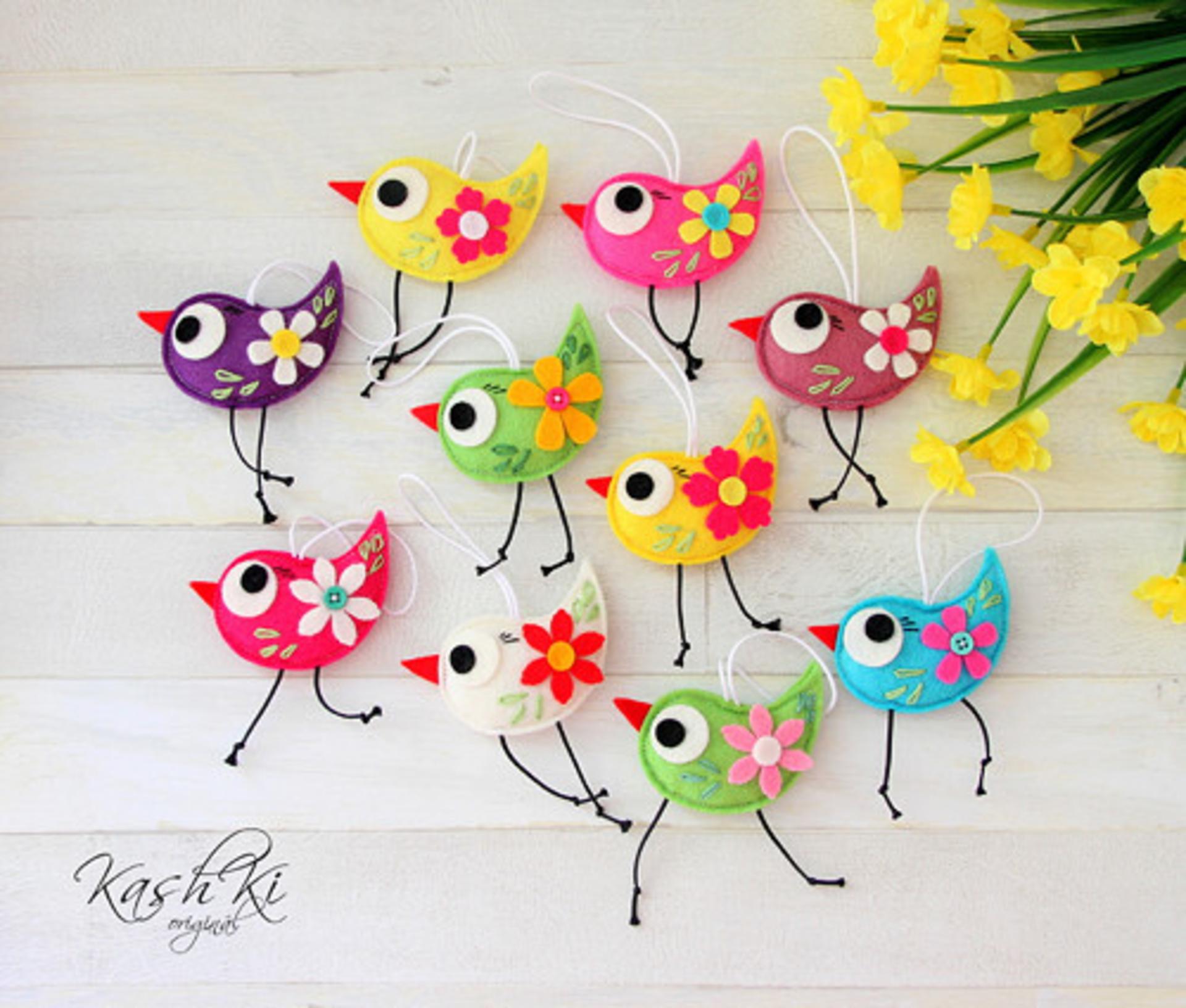 Ozdoba z filcu vyplnená dutým vláknom s výšivkou.